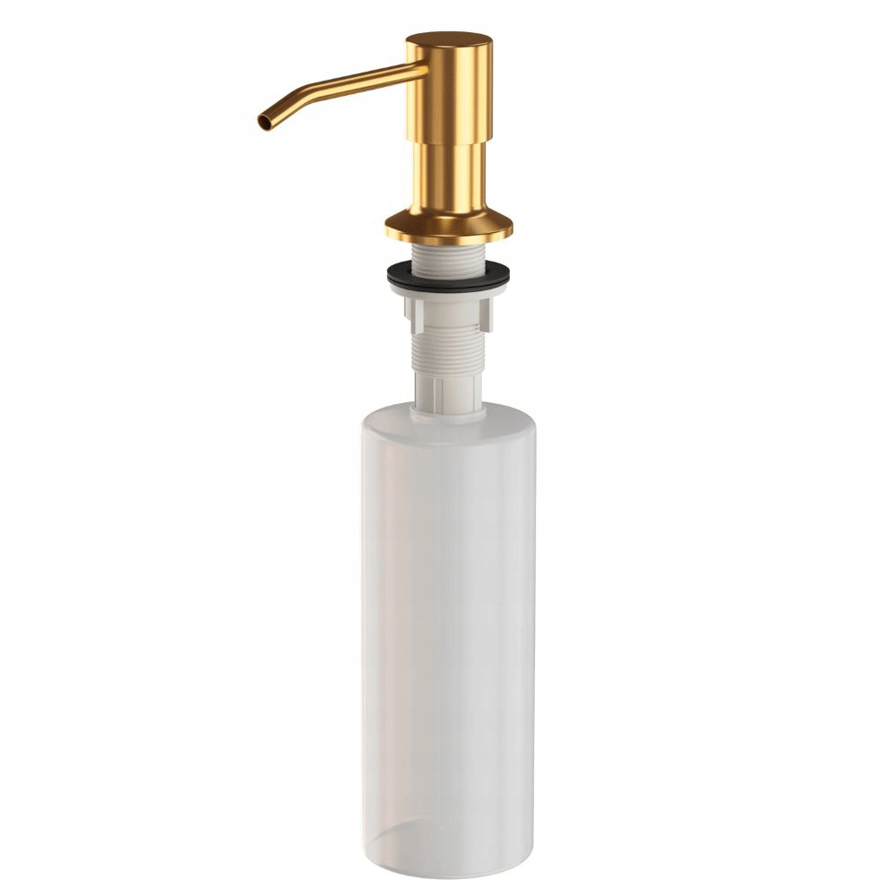● Stylowy i praktyczny dozownik do płynu w kolorze złotym to idealne rozwiązanie dla każdej kuchni lub łazienki. Jego pojemność wynosi 360 ml, co pozwala na wygodne przechowywanie płynu do mycia naczyń, mydła lub innego detergentu. Wymagany otwór montażowy o średnicy: 25–40 mm.