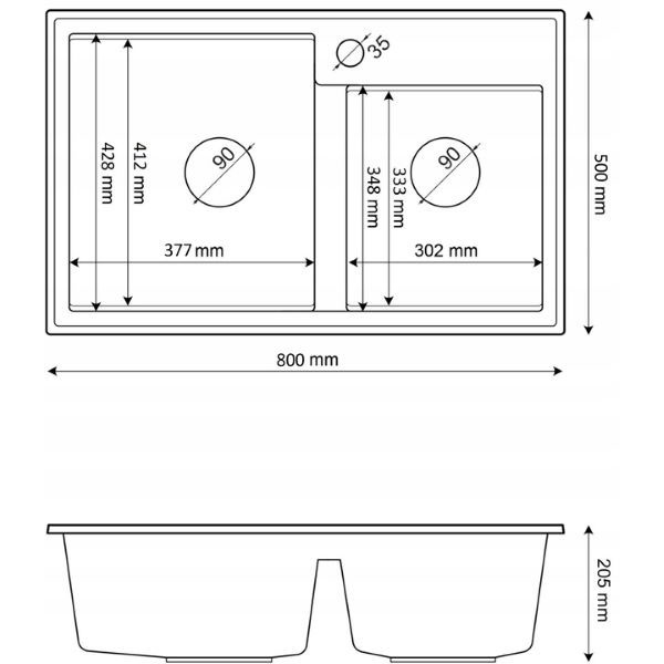 ● Dwukomorowy przyścienny syfon manualny w kolorze czarnym z możliwością podłączenia zmywarki i pralki (oszczędność przestrzeni).