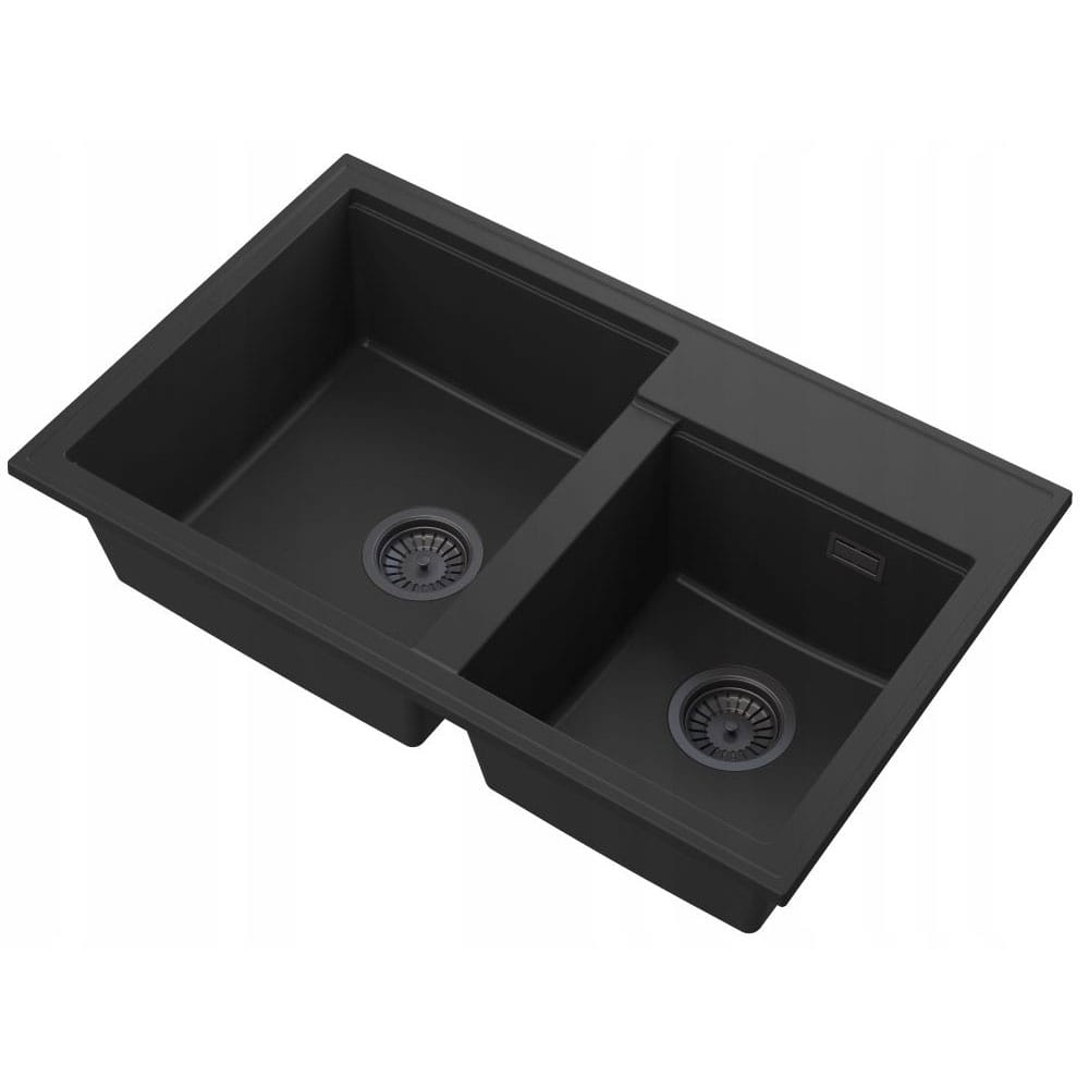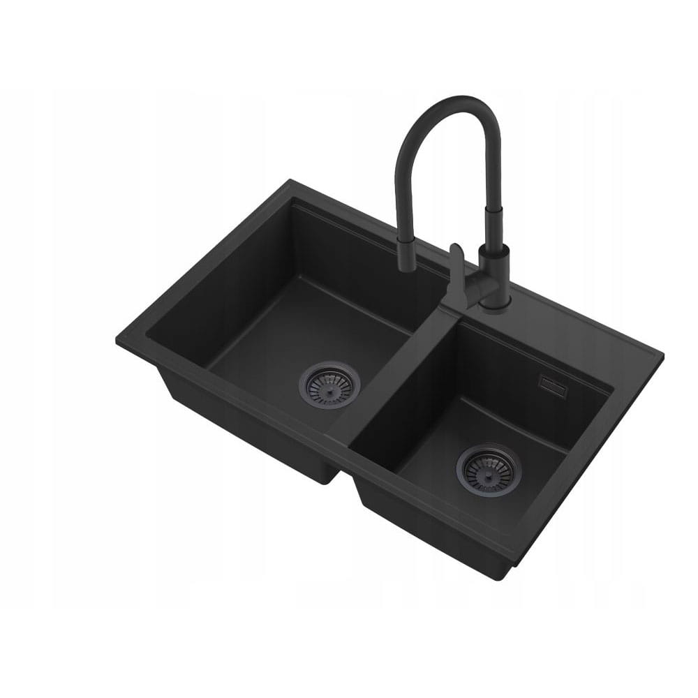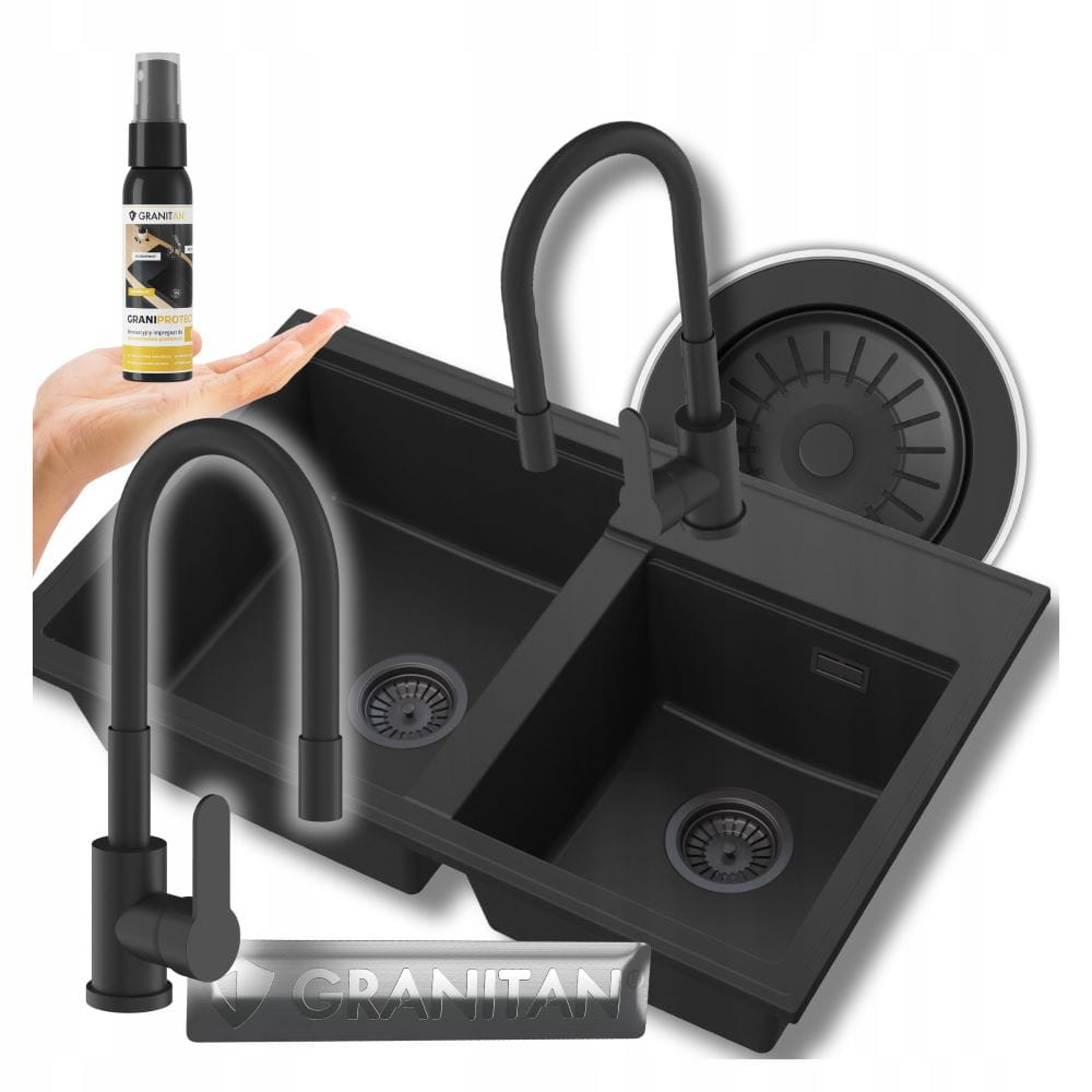 Zestaw - zlewozmywak granitowy Hektor czarny - bateria Grado Plus - syfon