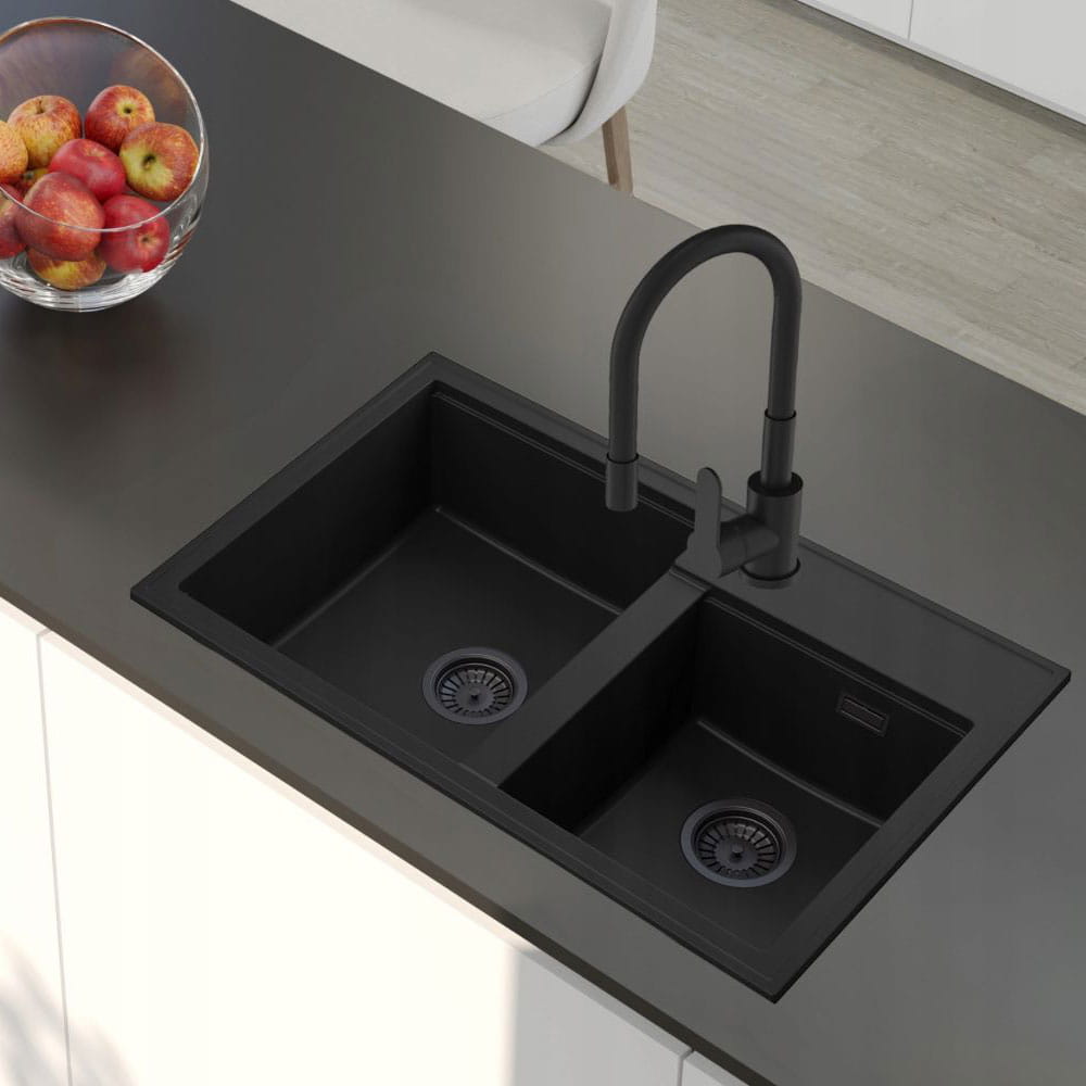 ● Funkcjonalny zestaw kuchenny HEKTOR to idealne rozwiązanie do nowoczesnej kuchni. Klasyczny design, wytrzymałość i przemyślane dodatki zapewniają komfort użytkowania i pasują do każdego wnętrza. Zlewozmywak granitowy HEKTOR to nowoczesne i eleganckie rozwiązanie do każdej kuchni, które łączy minimalistyczny design z wysoką funkcjonalnością. Posiada dwie pojemne komory, idealne do codziennego użytkowania, oraz odpływy w stylu czarnym, które świetnie komponują się z matową powierzchnią i czarną baterią. To wybór dla tych, którzy cenią trwałość, estetykę i ponadczasowy styl.