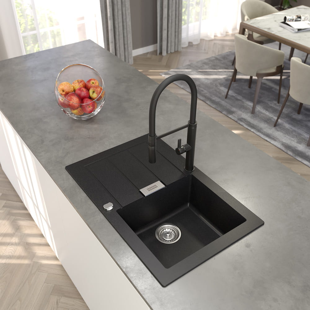 ● Zlewozmywak FRANKE Sirius SID 611-78 Tectonite, jednokomorowy, odwracalny zlewozmywak, w kolorze czarnym, do szafki od 45 cm. Praktyczny element wyposażenia kuchni. Wyprodukowany przez szwajcarskiego producenta - Franke. Wykonany z tworzywa SMC powleczonego materiałem PiMC, które zapewnia mu trwałość, zabezpieczenie od wysokich temperatur oraz środków chemicznych. Wykazuje także odporność na zarysowania czy zadrapania. Dzięki temu posłuży Ci bezawaryjną pracą przez długi czas oraz ułatwi codzienne przygotowywanie posiłków czy zmywanie naczyń.