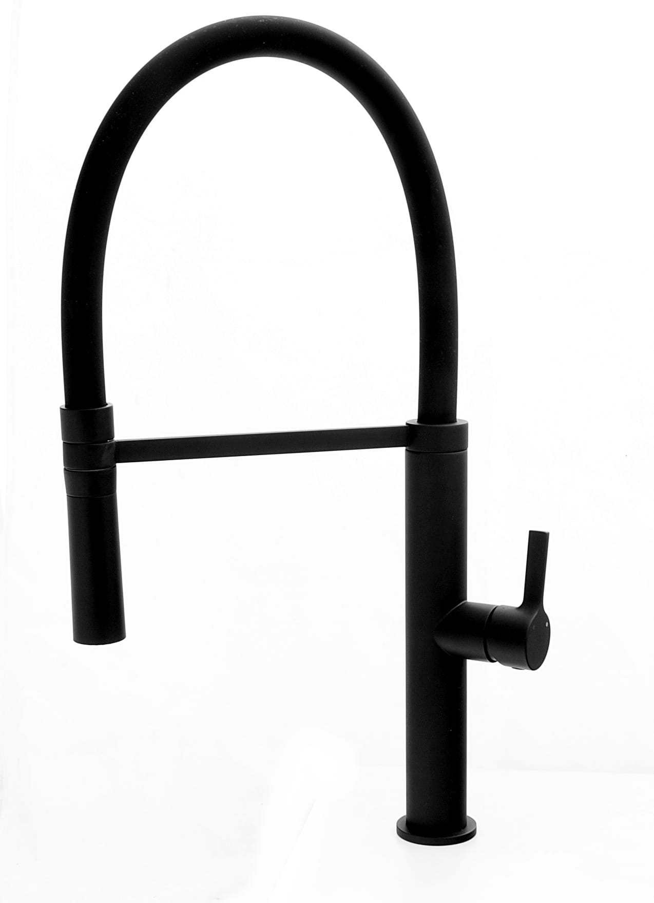 ● Bateria kuchenna FUSS o wysokiej jakości, wykonana z mosiądzu, w kolorze czarnym. Powłoka baterii odporna na przebarwienia i wysoką temperaturę, ceramiczna głowica. Standardowy otwór montażowy 35 mm. Dwufunkcyjna słuchawka (dwa rodzaje strumienia wody), obrotowa 360', wyciągana wylewka.