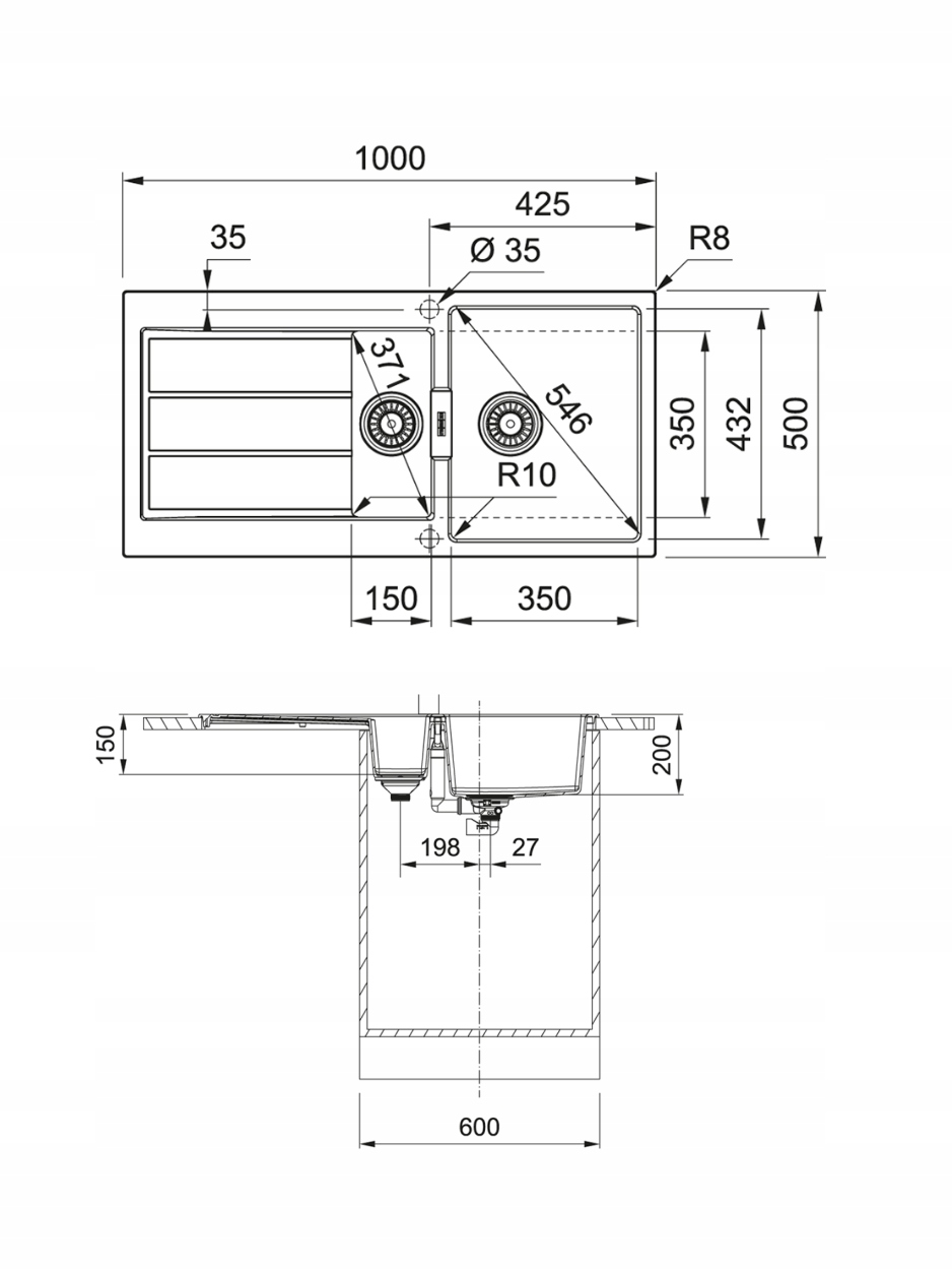 | Głębokość komory większej / mniejszej | 200 mm / 150 mm |