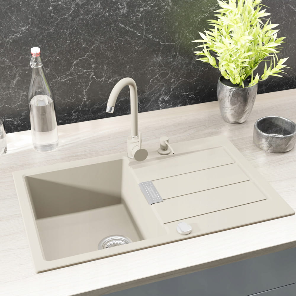 FRANKE Sirius SID 611-78, to jednokomorowy, odwracalny zlewozmywak, w kolorze beżowym, do szafki od 45 cm. Praktyczny element wyposażenia kuchni. Wyprodukowany przez szwajcarskiego producenta - Franke. Wykonany z tworzywa SMC powleczonego materiałem PiMC, które zapewnia mu trwałość, zabezpieczenie od wysokich temperatur oraz środków chemicznych. Wykazuje także odporność na zarysowania czy zadrapania. Dzięki temu posłuży Ci bezawaryjną pracą przez długi czas oraz ułatwi codzienne przygotowywanie posiłków czy zmywanie naczyń.