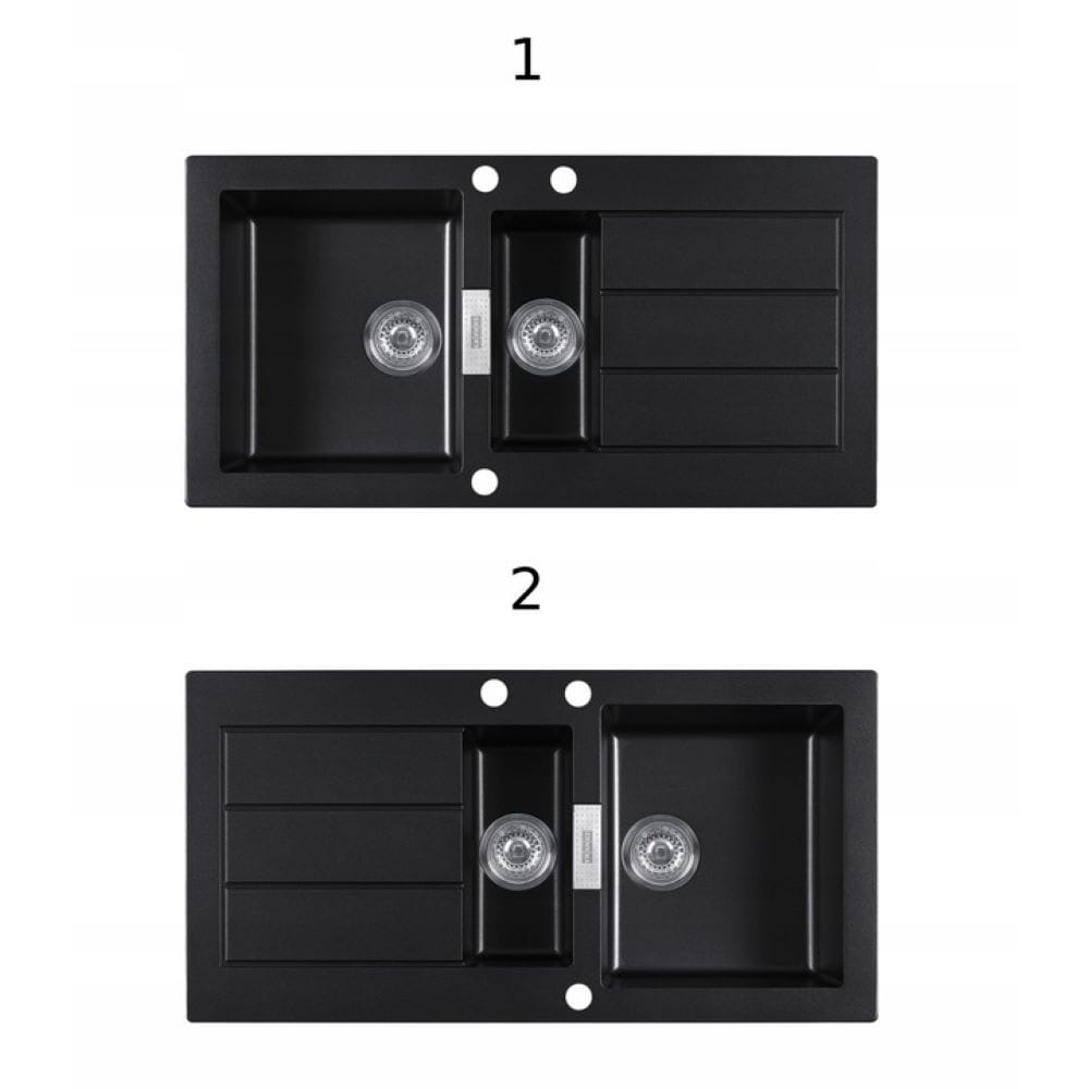 Zlewozmywak posiada fabrycznie nawiercone 3 otwory. W konfiguracji pod baterię, dozownik, oraz pokrętło od syfonu automatycznego. Po zakupie prosimy o podanie czy Państwo sobie życzą stronę komory: lewą czy prawą.