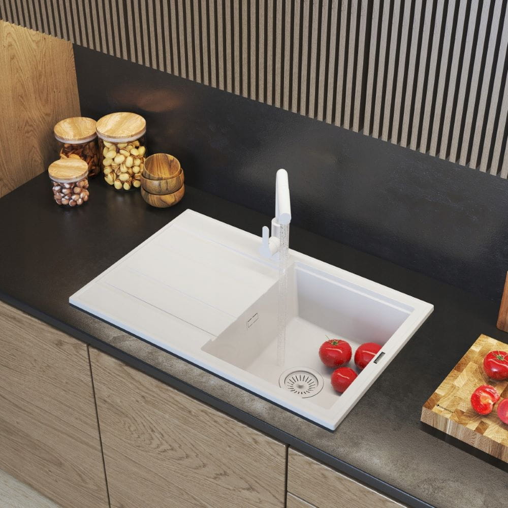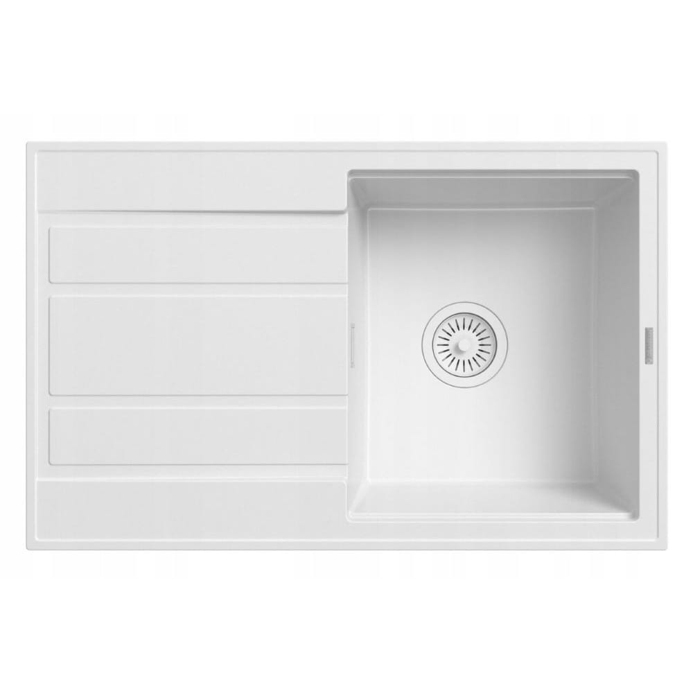 Zlewozmywak granitowy biały z ociekaczem jednokomorowy - syfon - zestaw Timor