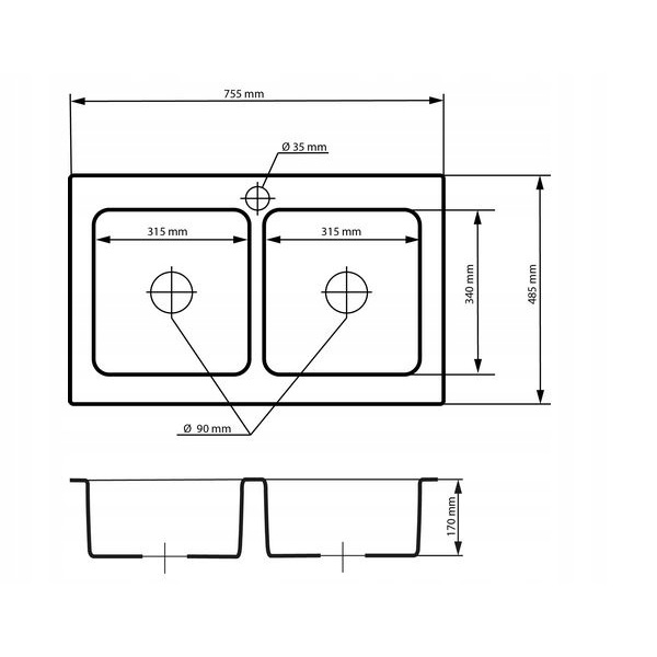Otwory w zlewie nawiercamy bezpłatnie na życzenie klienta według wzoru.