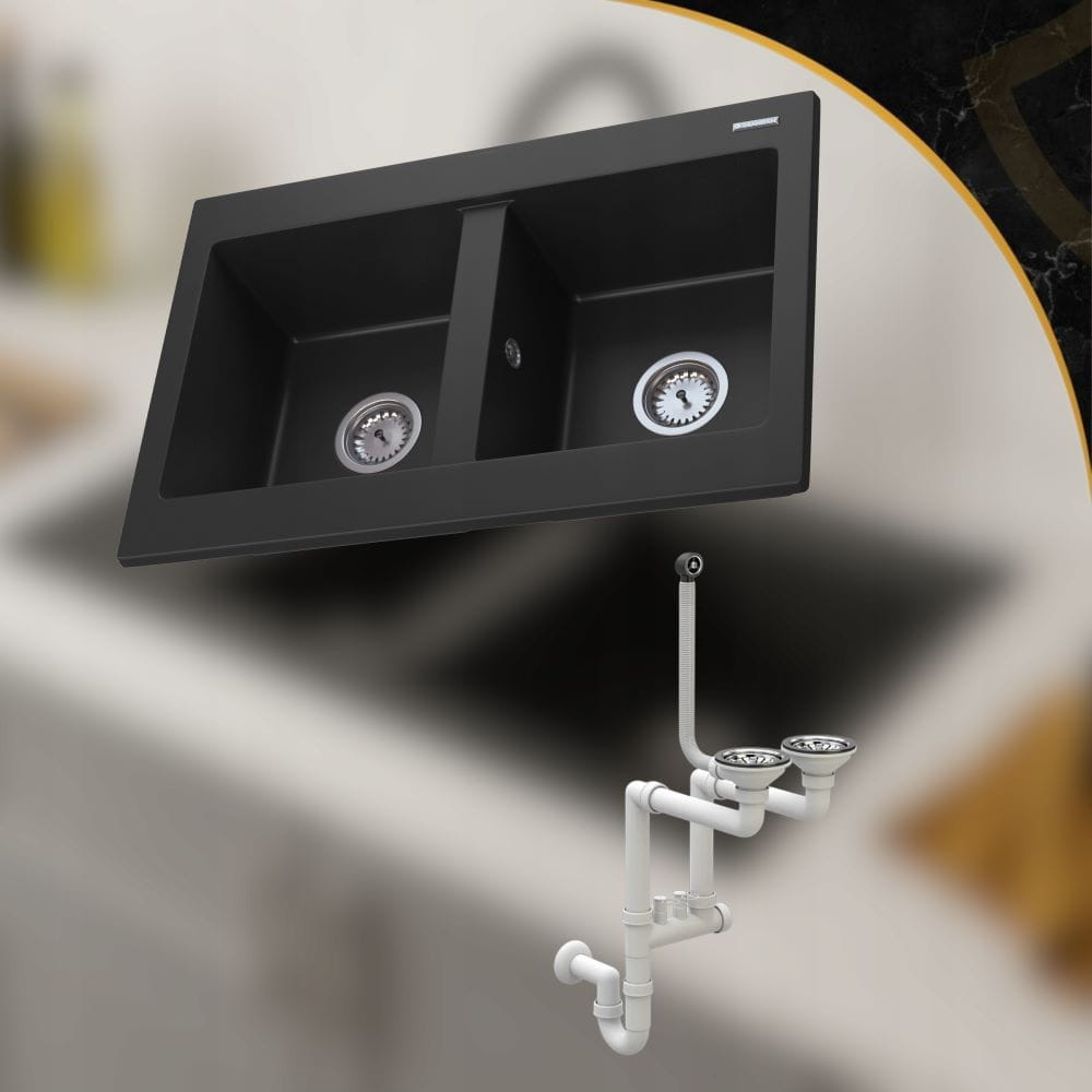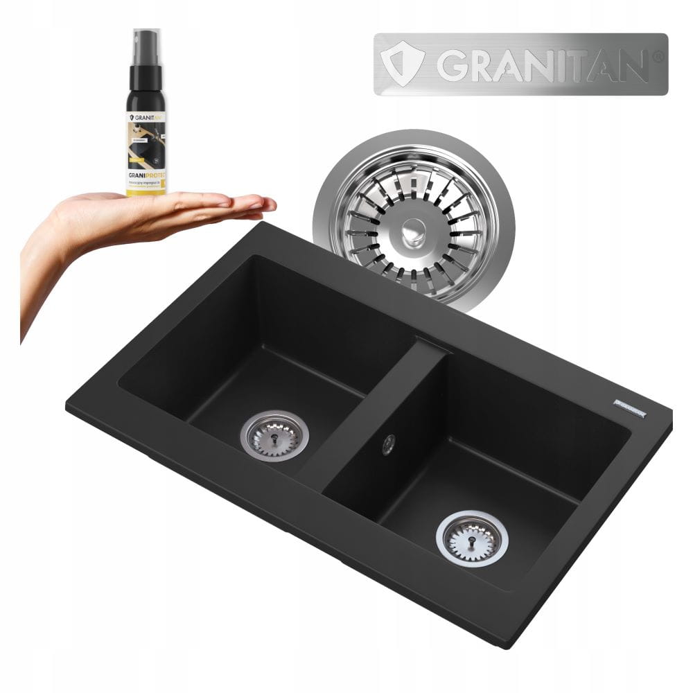 Zlewozmywak granitowy dwukomorowy kuchenny Verso - syfon