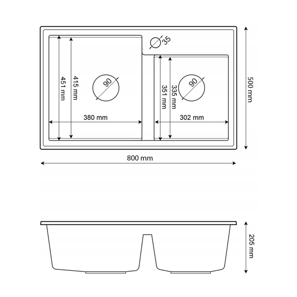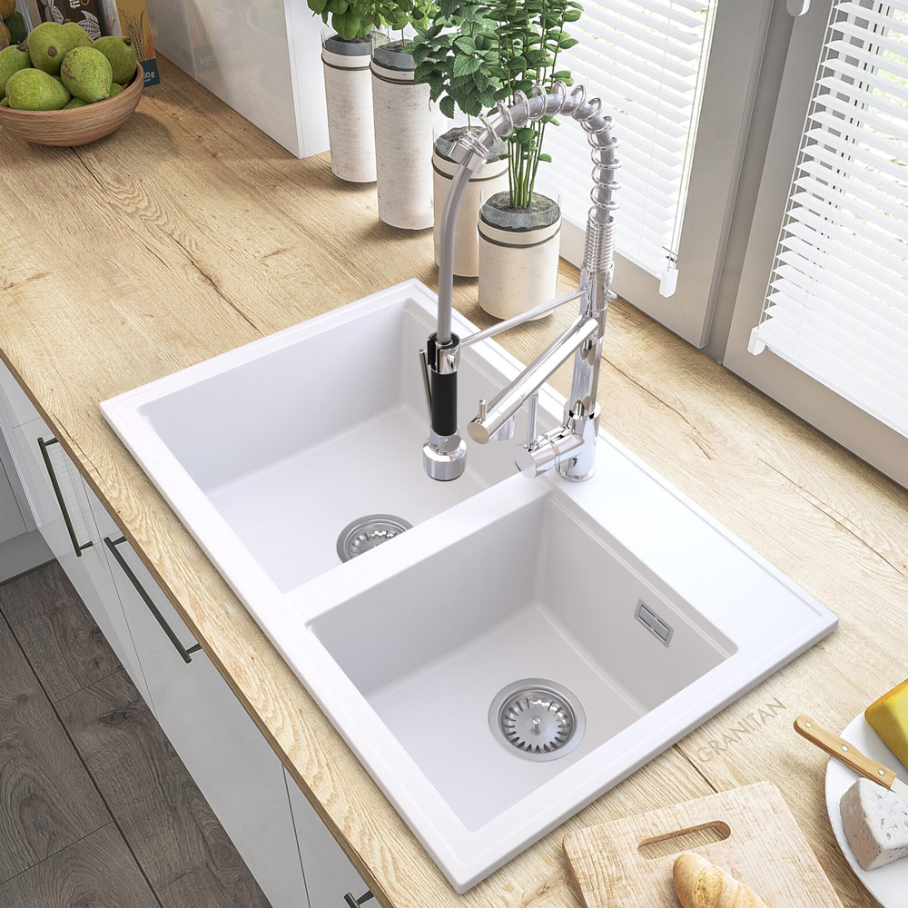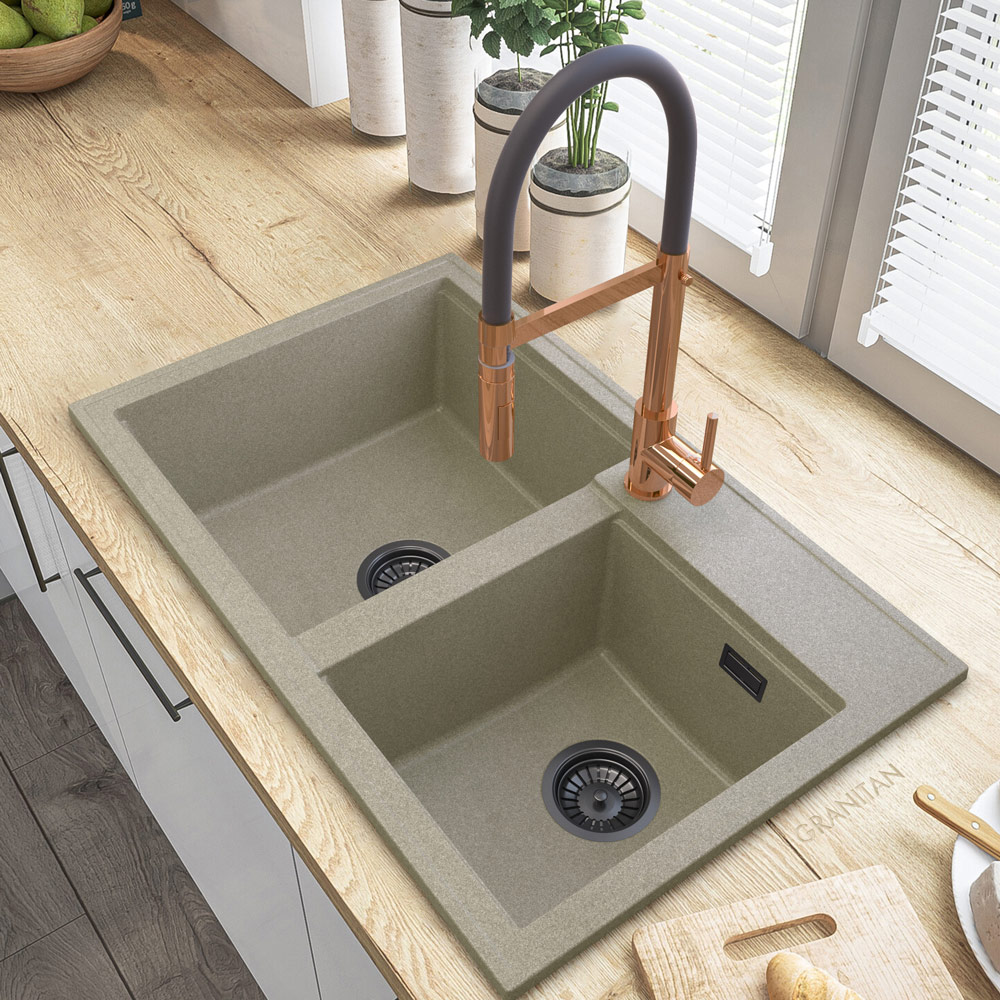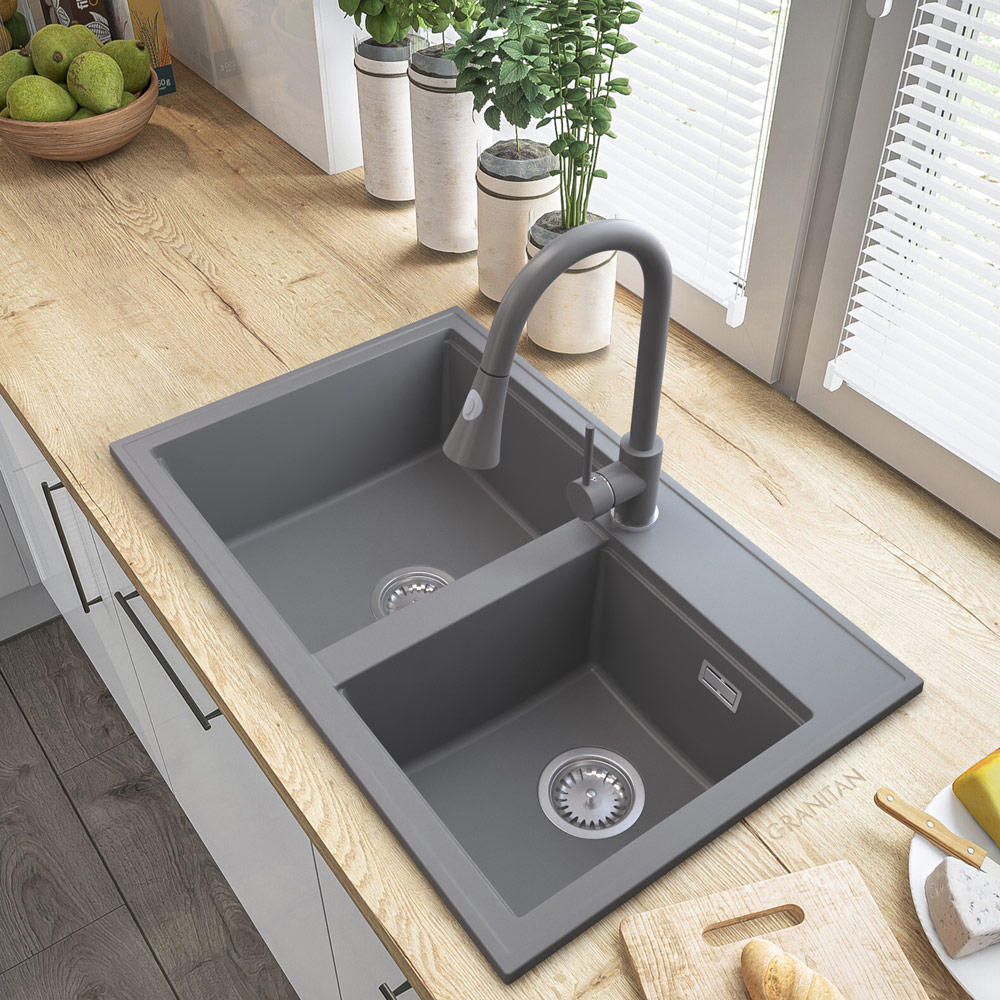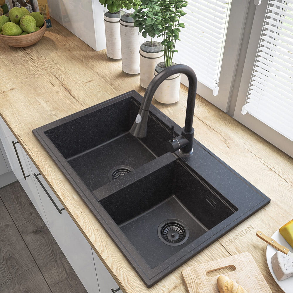 HEKTOR, to wysokiej jakości granitowy, dwukomorowy zlewozmywak do szafki od 80 cm. Wyprodukowany przez polskiego producenta. Gwarancja najwyższej wytrzymałości, dzięki specjalnej mieszance granitan plusR – odpornej na przebarwienia i zarysowania. Cechuje go wysoka odporność na gwałtowne zmiany temperatury (-18+280 stopni) oraz matowa, łatwa do czyszczenia powierzchnia.
