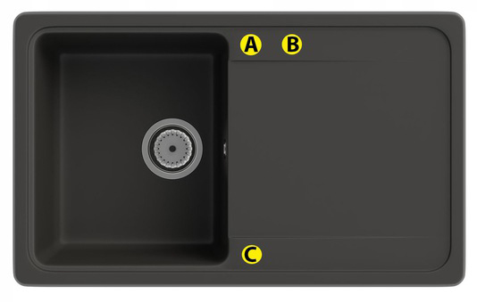 Istnieje możliwość BEZPŁATNEGO nawiercenia otworów. Miejsca, w których mogą być wykonane zostały oznaczone symbolami: A, B i C. Strony komory zostały oznaczone opcjami: 1 i 2.
