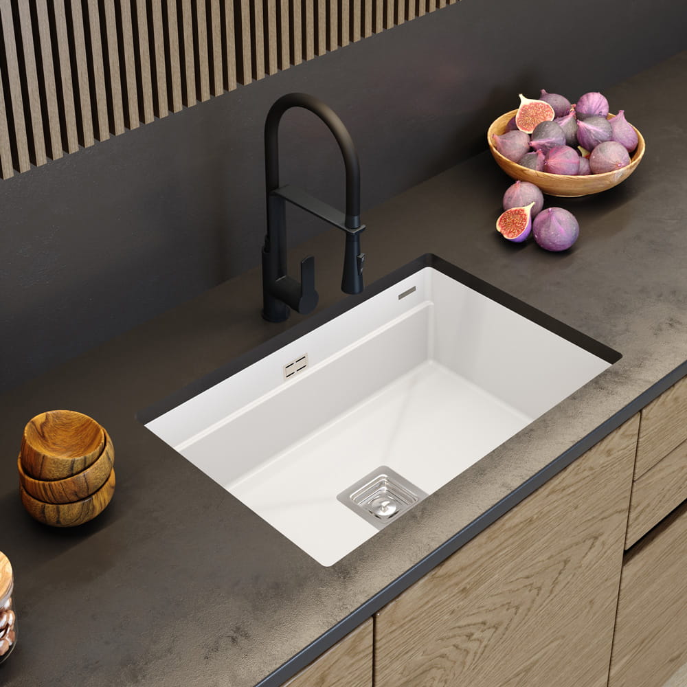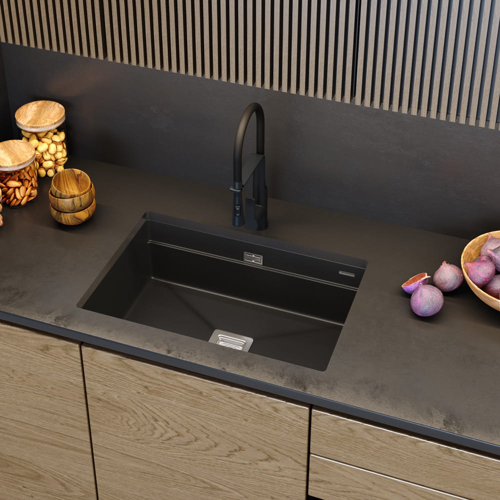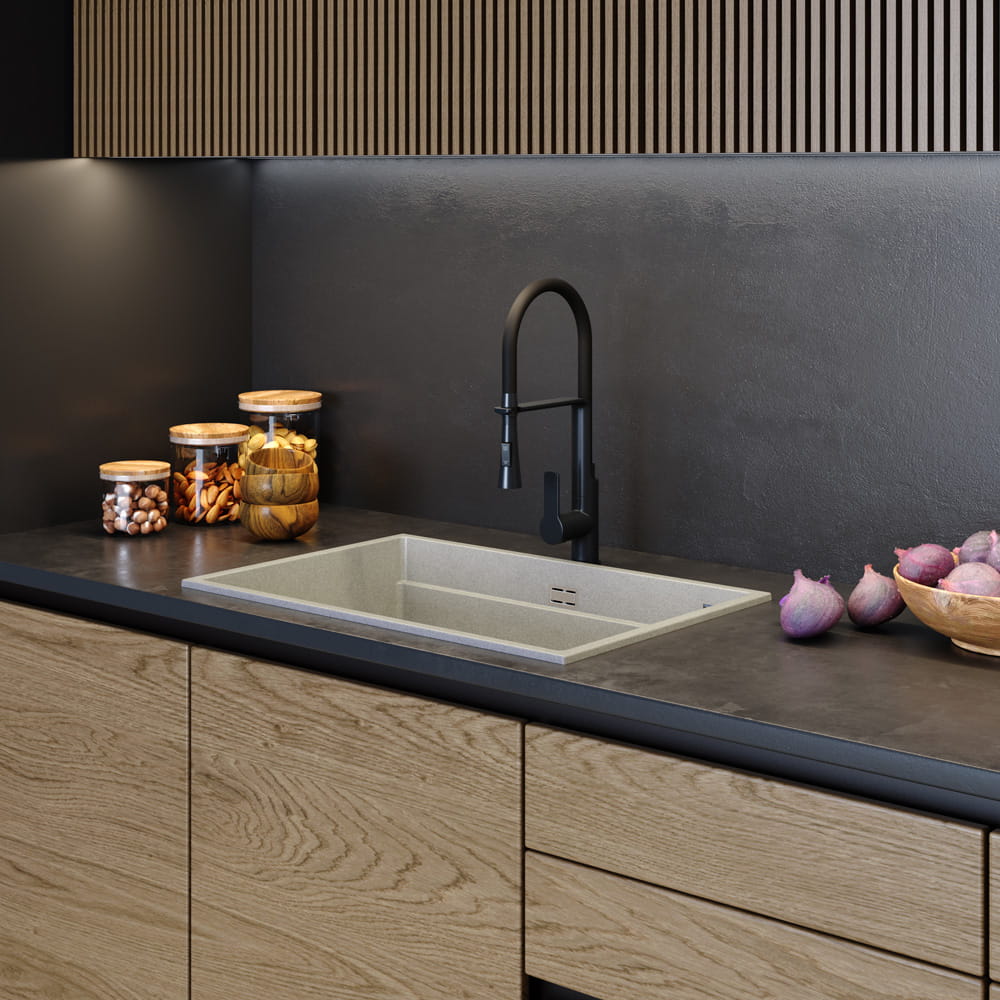 Szeroka gama kolorystyczna pozwala na wybór idealnej barwy, która zachowa harmonię w pomieszczeniu i stworzy bezapelacyjnie spójną przestrzeń. Klasyczny, geometryczny kształt w połączeniu z podblatowym systemem montażu sprawia, że zlew tworzy idealnie spójną powierzchnię z blatem kuchennym.