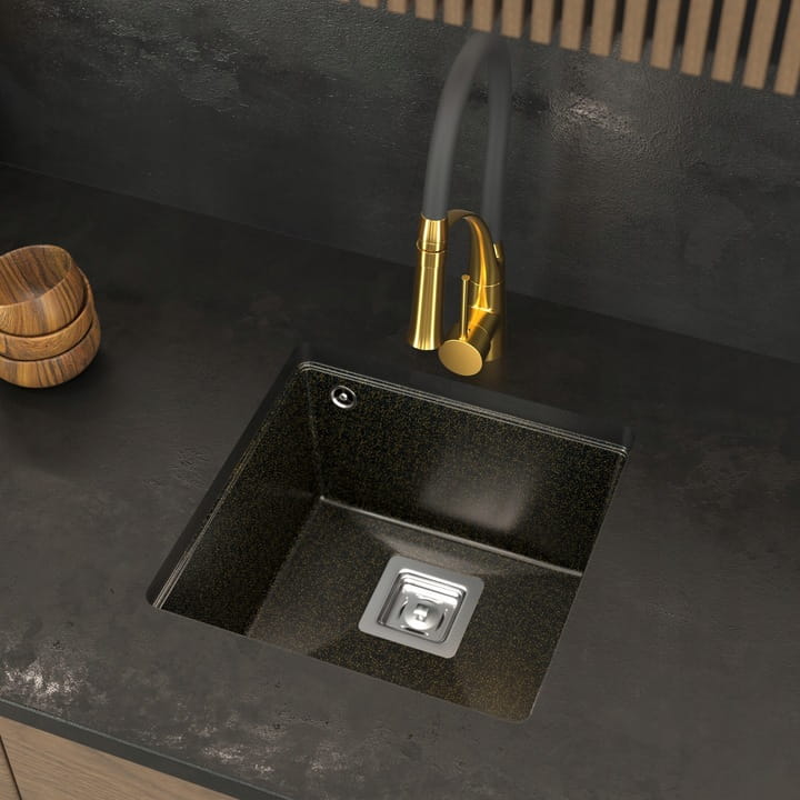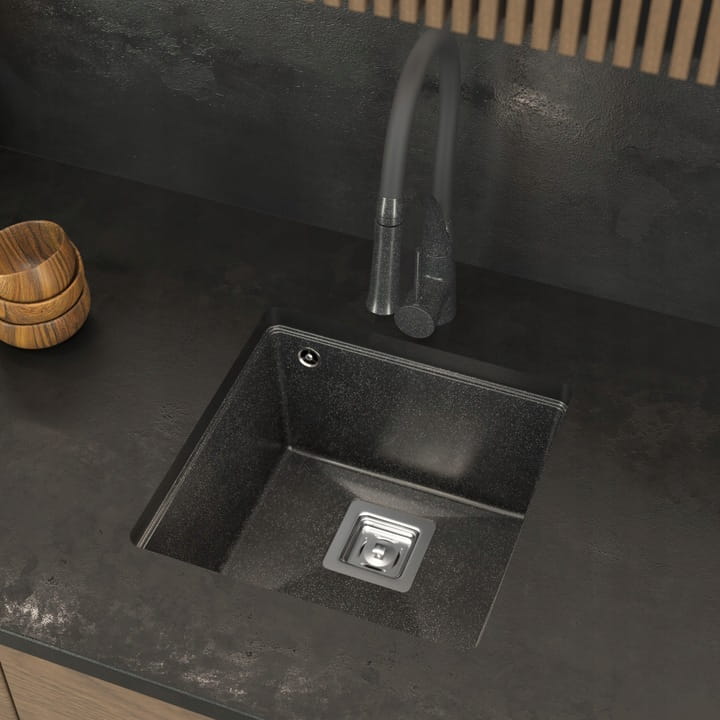 Wysokogatunkowy granit zamknięty w minimalistycznej formie tworzy produkt niezwykle atrakcyjny pod względem estetyki, który dodatkowo broni się jakością wykonania. Charakter zlewu został podkreślony syfonem z kwadratowym odpływem, dlatego całość tworzy intrygującą, a zarazem bardzo nowoczesną formę.