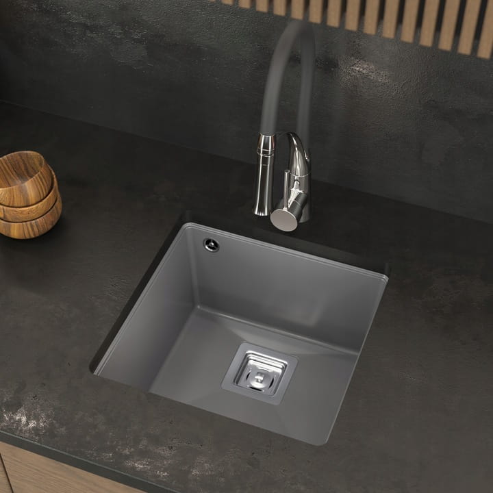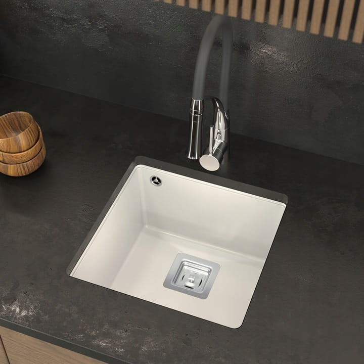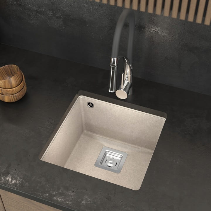 Klasyczny, geometryczny kształt w połączeniu z podblatowym systemem montażu sprawia, że zlew tworzy idealnie spójną powierzchnię z blatem kuchennym. Bogata kolorystyka, w której występuje model, pozwala bezproblemowo łączyć go z taflami kamiennymi, konglomeratami czy blatami kompozytowymi.