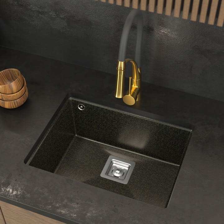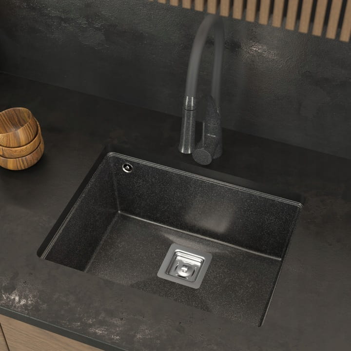 Wysokogatunkowy granit zamknięty w minimalistycznej formie tworzy produkt niezwykle atrakcyjny pod względem estetyki, który dodatkowo broni się jakością wykonania. Charakter zlewu został podkreślony syfonem z kwadratowym odpływem, dlatego całość tworzy intrygującą, a zarazem bardzo nowoczesną formę.