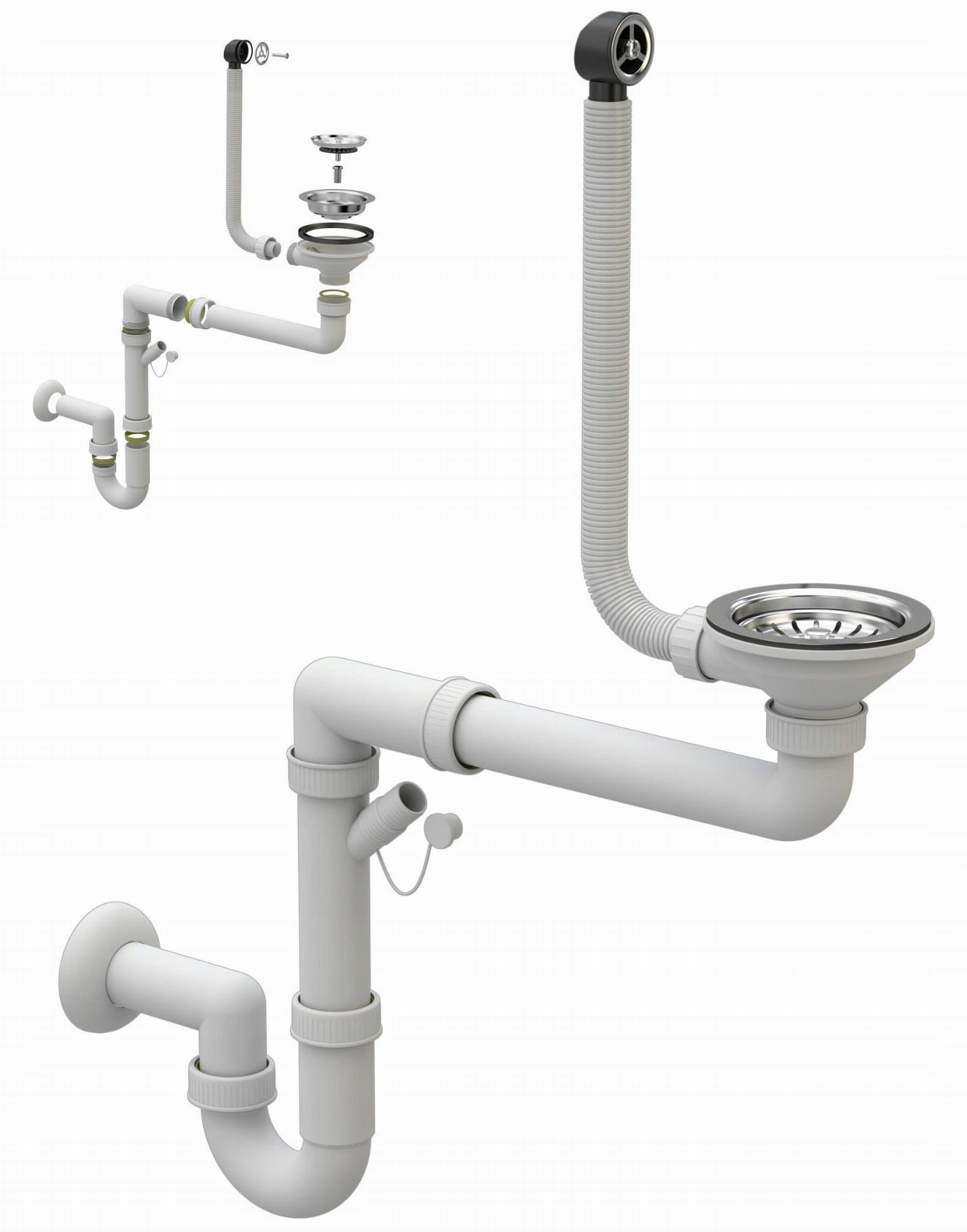 Zlewozmywak wyposażony w syfon manualny przyścienny. Syfon oszczędzający przestrzeń z możliwością podłączenia pralki lub zmywarki. Do wyboru w 3 kolorach.