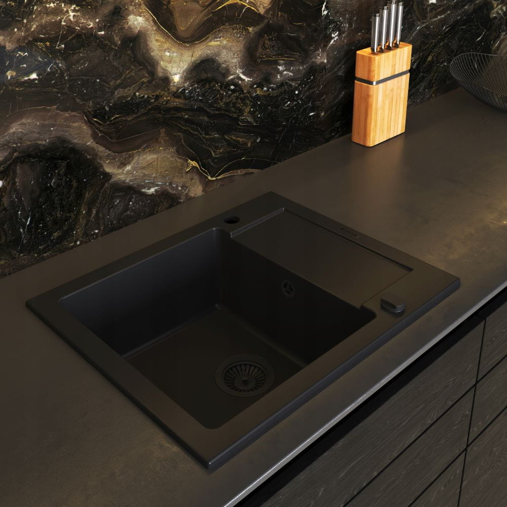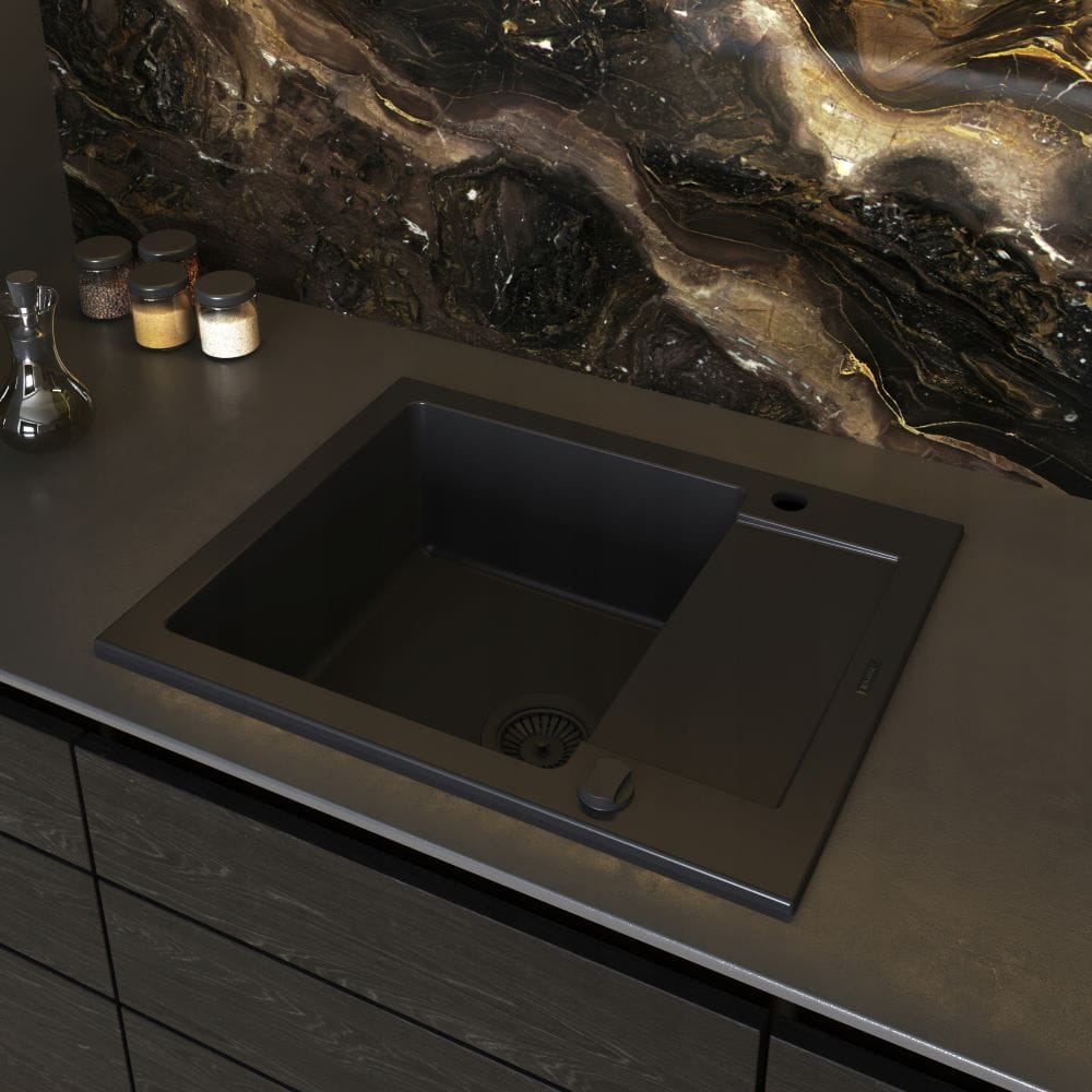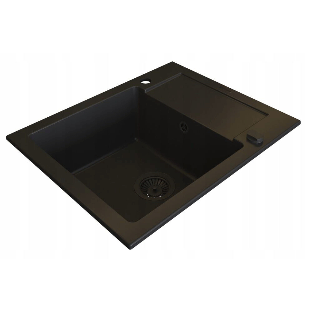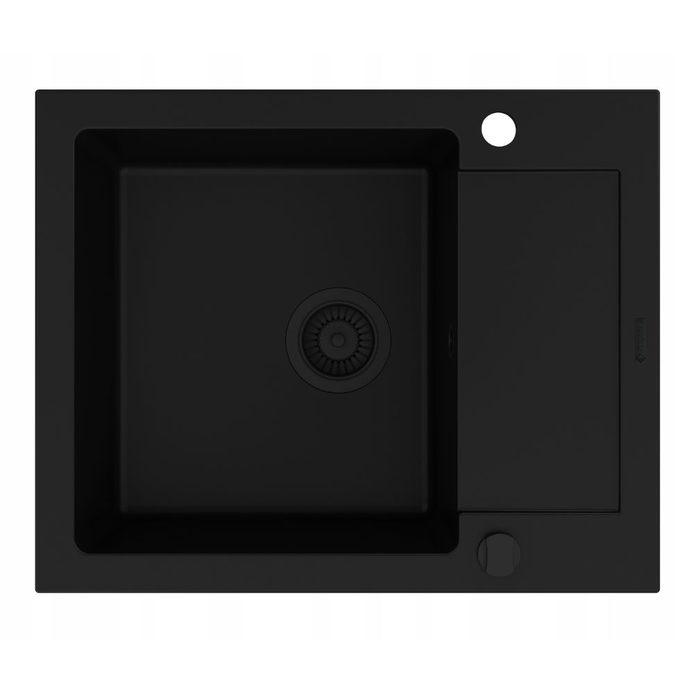 Zlewozmywak granitowy z ociekaczem Pyramis Mido 62×50 VOLCANO czarny mat