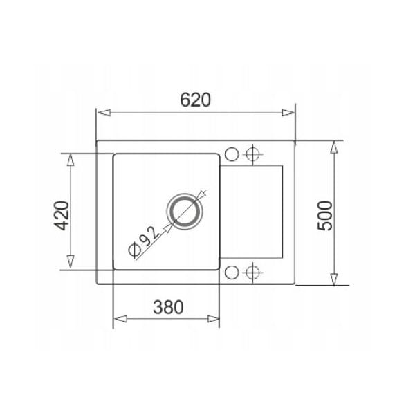 Elegancki i prosty w formie zlewozmywak z jedną komorą i praktycznym krótkim ociekaczem. Wyprodukowany w Europie z wykorzystaniem najwyższej jakości surowców, dzięki czemu jego powierzchnia odporna jest na plamy, zarysowania, wysoką temperaturą (aż do 280 stopni C) oraz łatwy w konserwacji. Model Mido 62×50 posiada podwiert technologicznych po obu stronach, co pozwala wybrać stronę komory według indywidualnych potrzeb i preferencji.