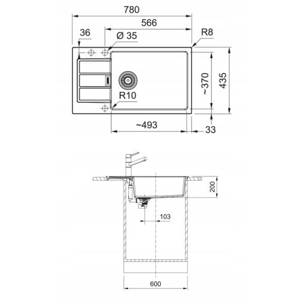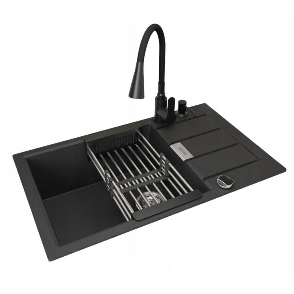 Zlewozmywak jednokomorowy z ociekaczem Sirius Onyx Franke z baterią Flexo