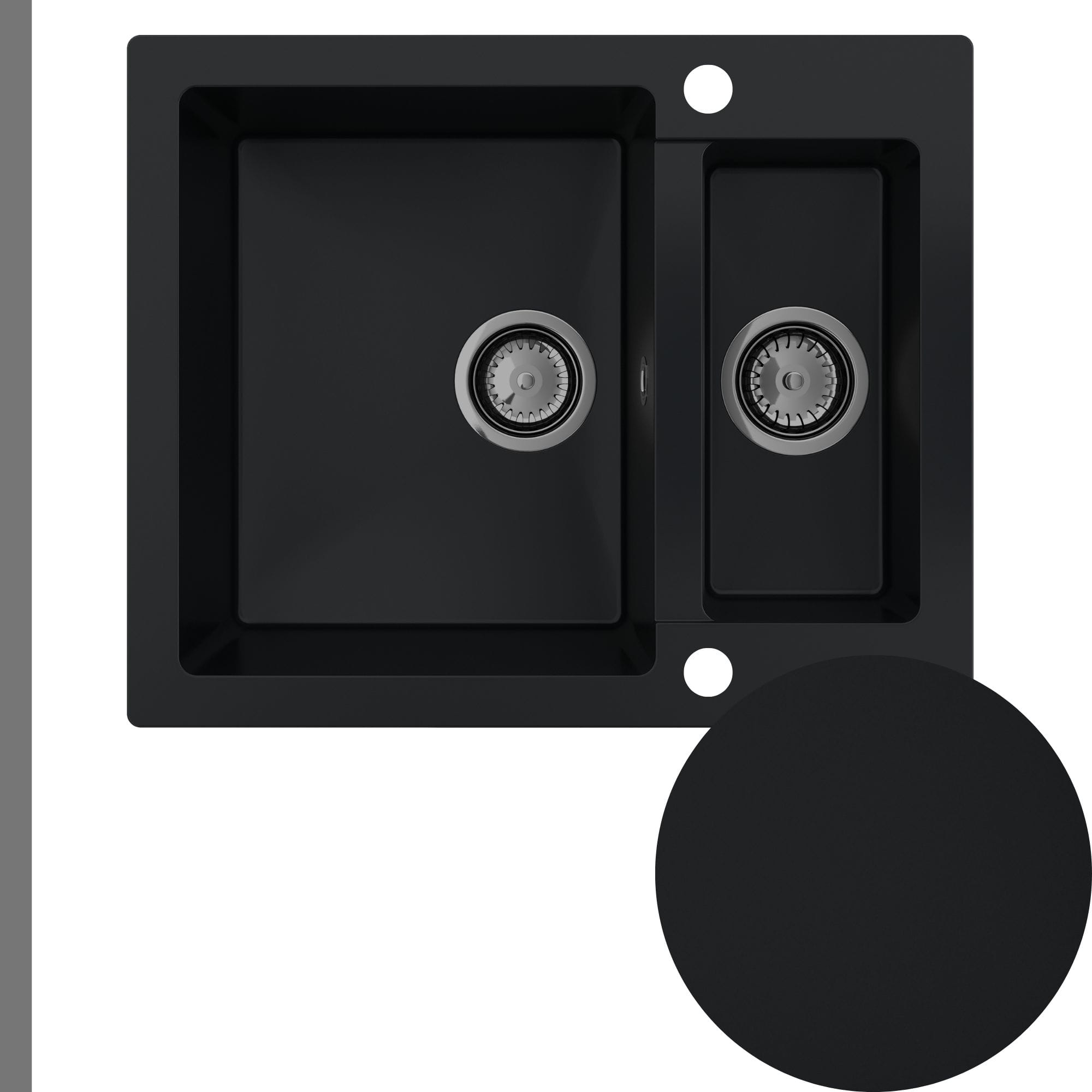 Zlewozmywak kuchenny granitowy 1,5-komorowy czarny syfon czarny RASSO 60