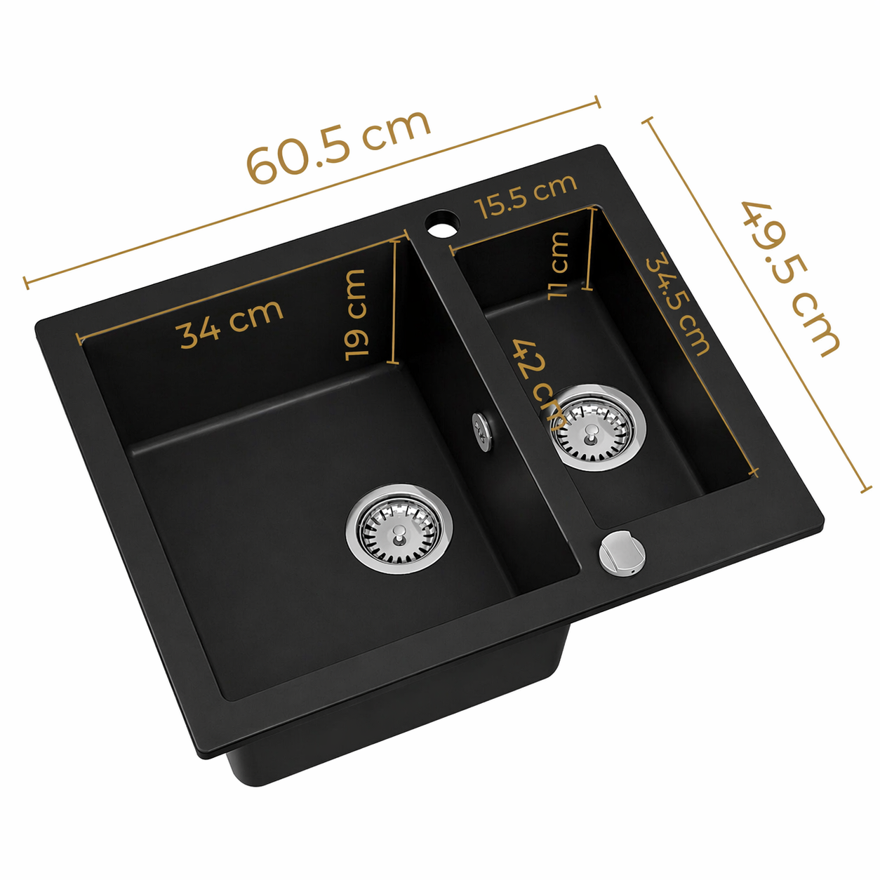Półtorakomorowa konstrukcja pozwala jednocześnie myć, płukać i przygotowywać produkty bez blokowania głównej przestrzeni roboczej, a duża komora główna bez problemu pomieści garnki i większe naczynia, natomiast mniejsza komora pomocnicza sprawdzi się idealnie do odsączania, płukania lub odkładania naczyń. Zlewozmywak wykonany w technologii NANO GRANITcharakteryzuje się wysoką odpornością na temperaturę, zarysowania i uderzenia, dzięki czemu zachowuje swój wygląd i trwałość przez długie lata intensywnego użytkowania, a gładka powierzchnia i zaokrąglone krawędzieułatwiają utrzymanie czystości i ograniczają powstawanie osadów. Kompaktowe wymiary sprawiają, że model pasuje do szafek od 60 cm, a w zestawie znajduje się dwukomorowy syfon przyścienny Space Saving w kolorze czarnym, który dzięki spłaszczonej konstrukcji pozwala maksymalnie wykorzystać przestrzeń w szafce oraz umożliwia podłączenie zmywarki lub pralki.