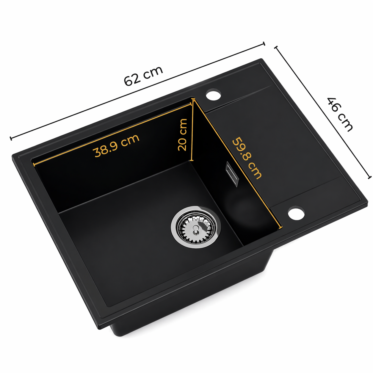 Zlewozmywak kuchenny granitowy jednokomorowy czarny syfon czarny LORAL 55