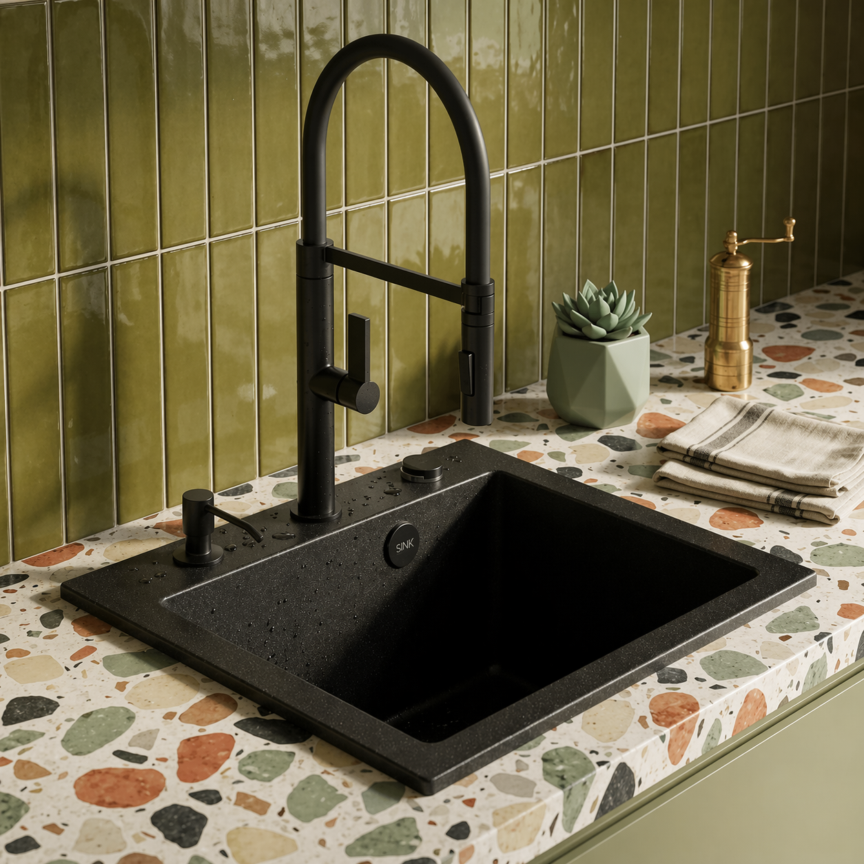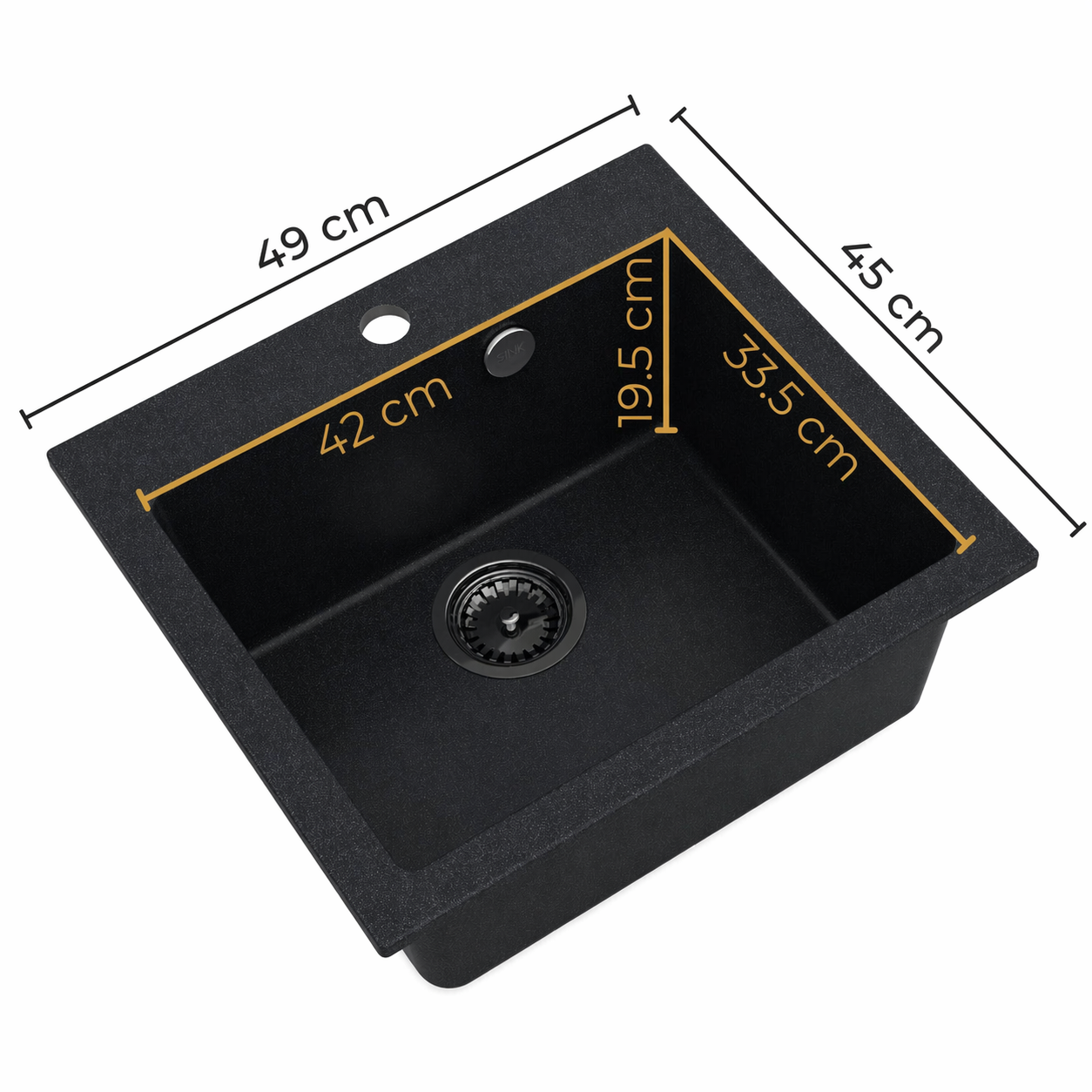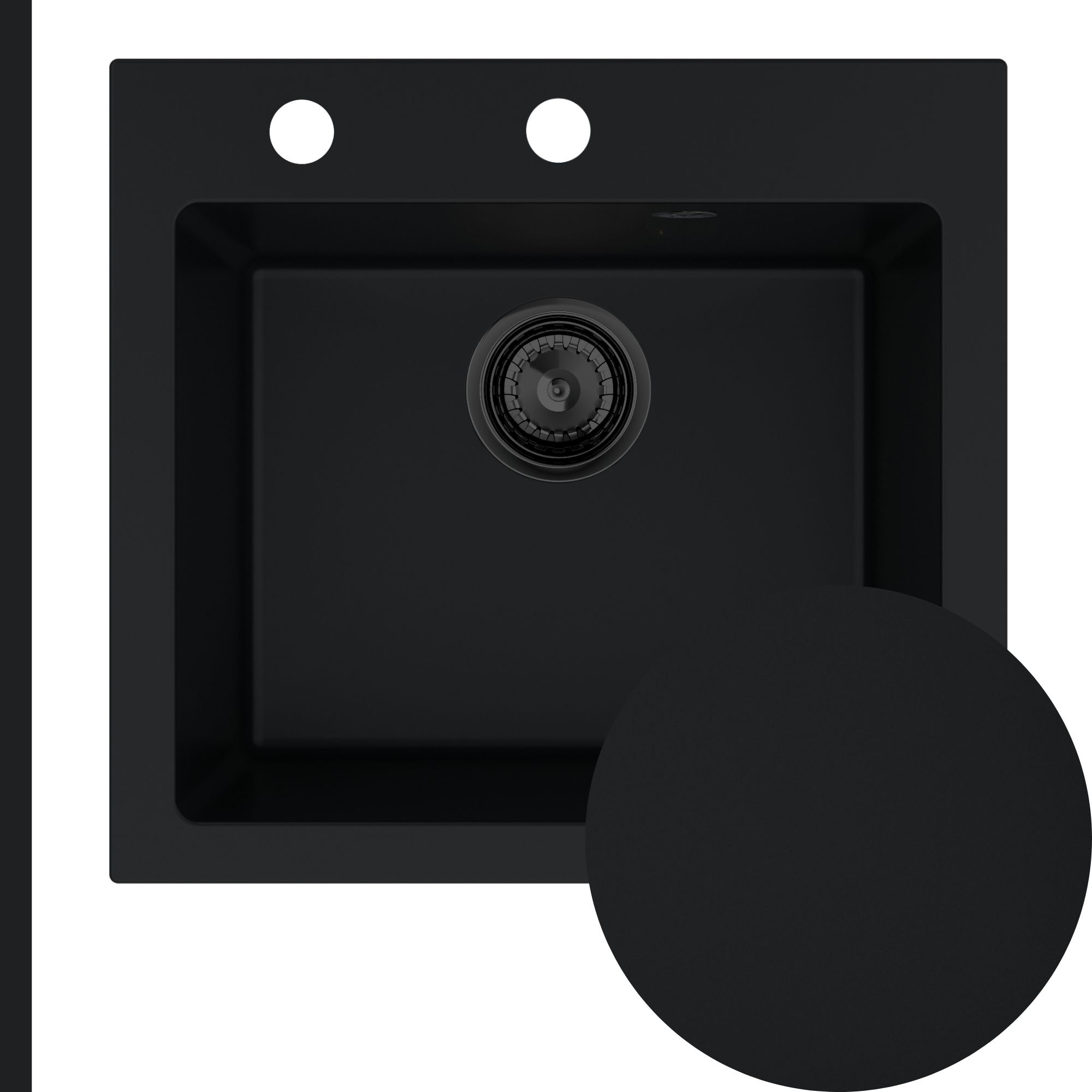 Model RASSO 50 to granitowy zlewozmywak jednokomorowy w eleganckim czarnym kolorze, który łączy funkcjonalność, trwałość oraz wygodę użytkowania, dzięki czemu doskonale sprawdzi się zarówno w mniejszych, jak i średnich kuchniach.