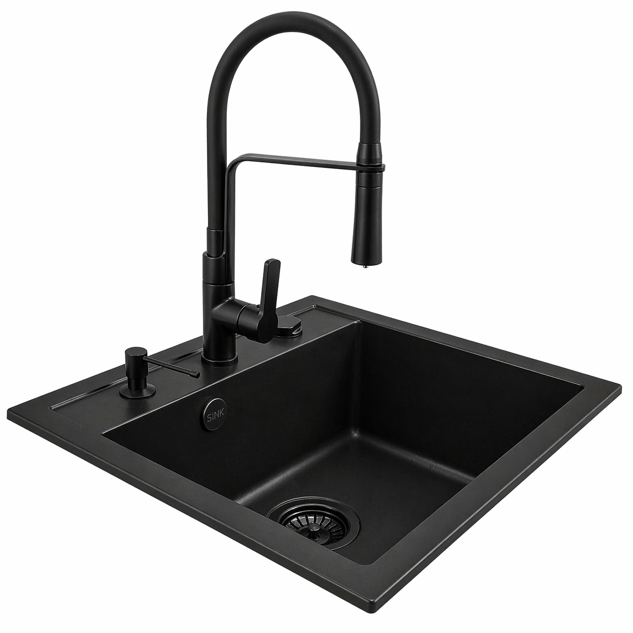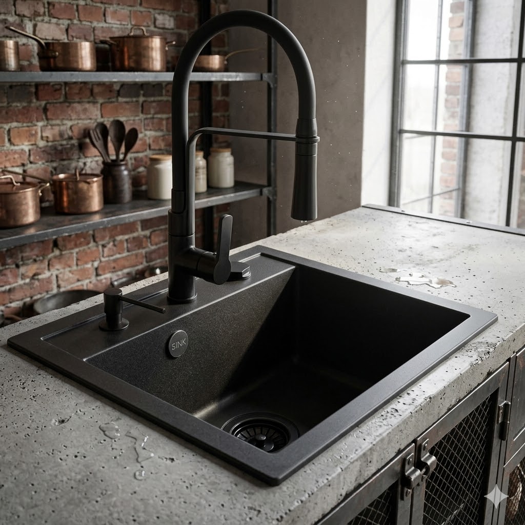 Model RASSO 60 to granitowy zlewozmywak jednokomorowy w eleganckim czarnym kolorze, który łączy funkcjonalność, trwałość oraz wygodę użytkowania, dzięki czemu doskonale sprawdzi się zarówno w mniejszych, jak i średnich kuchniach.