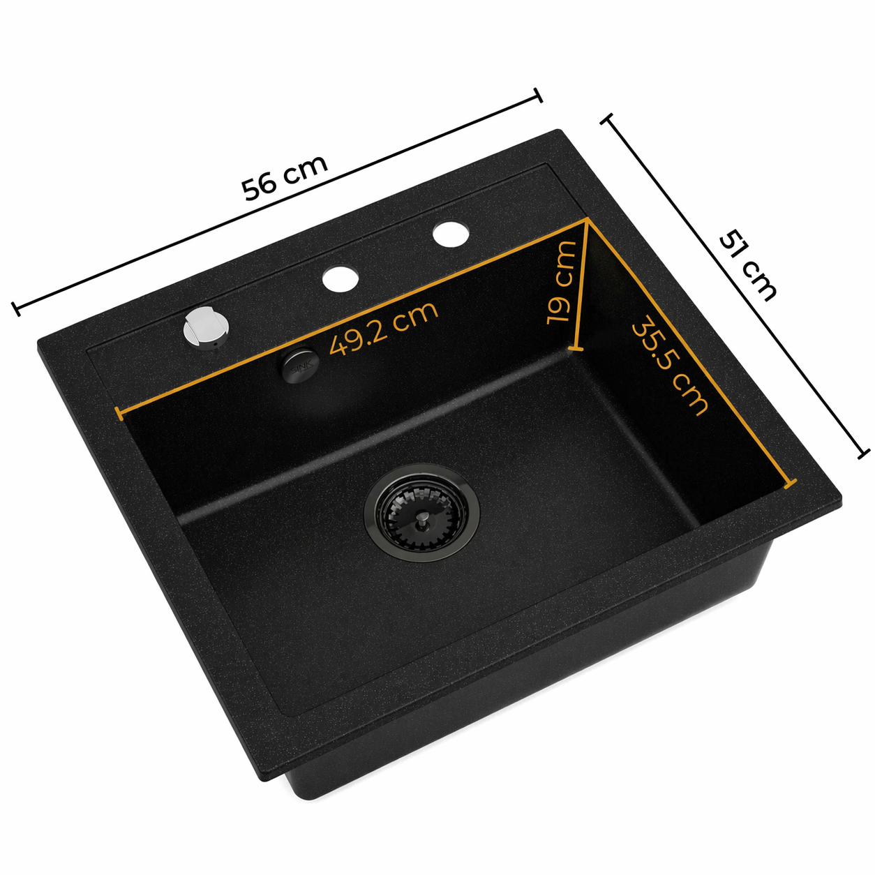Jednokomorowa konstrukcja zapewnia prostotę i komfort pracy, a kompaktowe wymiary 56 x 51 cm pozwalają optymalnie wykorzystać przestrzeń blatu bez rezygnacji z wygody. Głęboka komora 19 cm umożliwia komfortowe mycie większych naczyń, garnków i patelni, co czyni model RASSO 50 praktycznym rozwiązaniem do codziennych czynności kuchennych. Zlewozmywak przeznaczony jest do szafek od 60 cm, co zapewnia uniwersalne zastosowanie w różnych układach kuchni. Wykonanie w technologii NANO GRANIT gwarantuje odporność na wysoką temperaturę, zarysowania, uderzenia oraz intensywne użytkowanie, dzięki czemu zlew zachowuje estetyczny wygląd przez długi czas. Gładka powierzchnia i zaokrąglone krawędzie ułatwiają czyszczenie i ograniczają osadzanie się zabrudzeń, zwiększając komfort użytkowania. Dodatkowym atutem jest możliwość dopasowania otworów w zależności od konfiguracji akcesoriów, co pozwala dostosować zlew do indywidualnych potrzeb. W zestawie znajduje się czarny syfon przyścienny SPACE SAVING PREMIUM, który oszczędza miejsce w szafce, umożliwia podłączenie zmywarki lub pralki oraz pozwala zachować porządek pod zlewem. Stabilny montaż na zaczepy, dołączona instrukcja oraz kompletny zestaw sprawiają, że instalacja jest szybka i bezproblemowa.