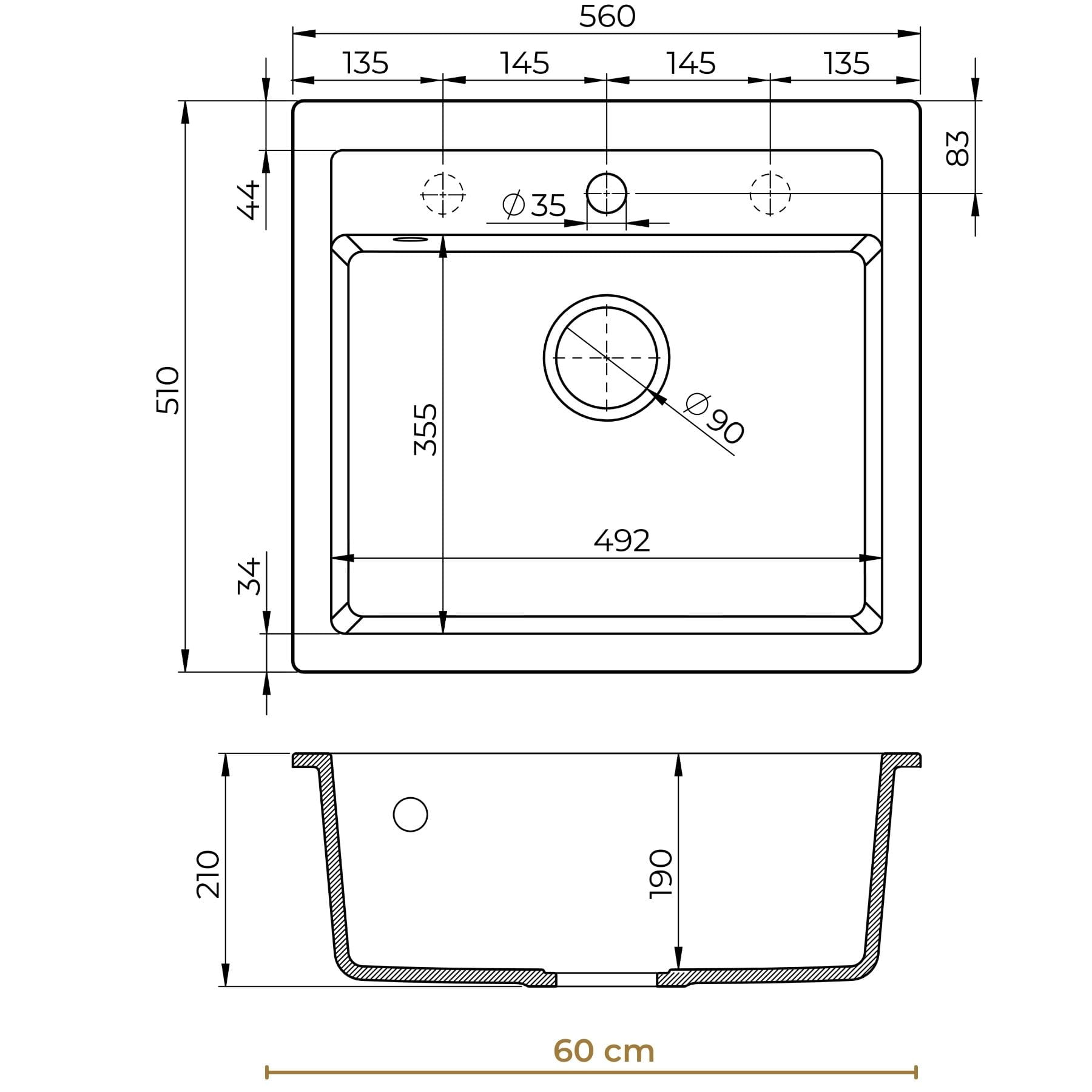 | Do szafki | od 60 cm |