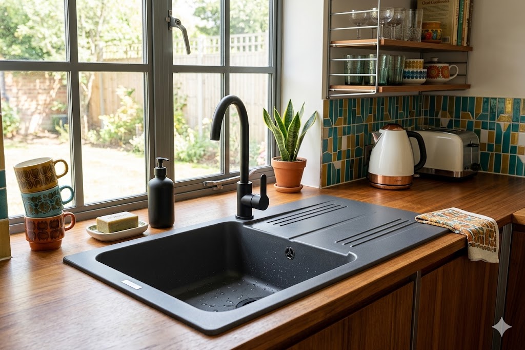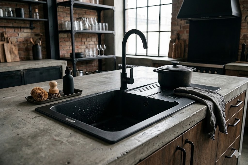 W komplecie otrzymujesz zlewozmywak granitowy DANO, syfon przyścienny czarny oraz możliwość pełnej personalizacji otworów, co tworzy praktyczne, trwałe i estetyczne rozwiązanie do każdej kuchni.