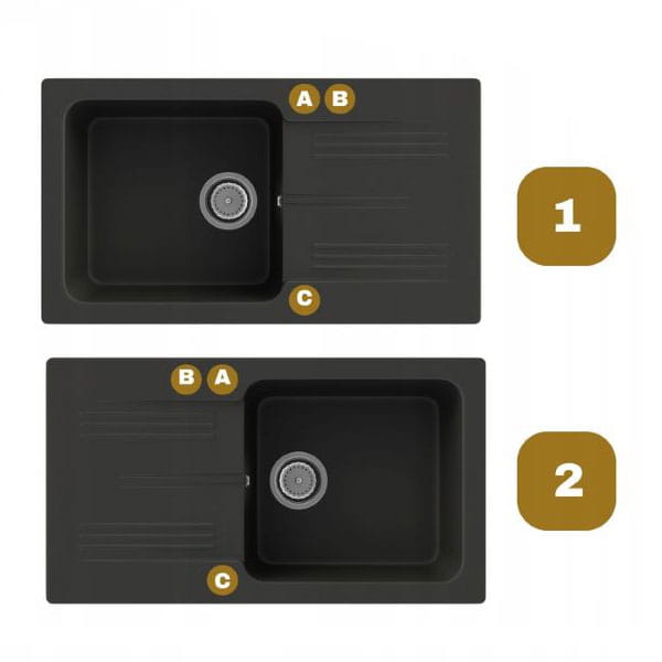 Model DANO to granitowy zlewozmywak jednokomorowy w eleganckim czarnym kolorze, który łączy nowoczesny design, wysoką trwałość oraz maksymalną wygodę użytkowania, dzięki czemu doskonale sprawdzi się zarówno w nowoczesnych, jak i klasycznych aranżacjach kuchni. Duża i wygodna komora robocza zapewnia swobodę podczas mycia naczyń, garnków czy blach, a także ułatwia przygotowywanie posiłków, co czyni go idealnym rozwiązaniem do codziennego i intensywnego użytkowania. Zlewozmywak wykonany jest z wysokiej jakości granitu, co gwarantuje odporność na przebarwienia, uszkodzenia oraz codzienne użytkowanie, a jego uniwersalna forma i ponadczasowa czarna kolorystyka sprawiają, że doskonale dopasuje się do każdego wnętrza. Model DANO przeznaczony jest do szafek od 50 cm, co daje większą elastyczność w aranżacji kuchni i pozwala dopasować go do różnych układów zabudowy. Dodatkowym atutem jest możliwość bezpłatnego wykonania otworów (A, B, C) oraz wyboru strony komory (lewa lub prawa), co pozwala w pełni dopasować zlewozmywak do baterii kuchennej, dozownika płynu lub korka automatycznego, istnieje również możliwość zamówienia produktu bez nawierconych otworów. Gładka powierzchnia ułatwia utrzymanie czystości i zapewnia estetyczny wygląd przez długi czas. W zestawie znajduje się czarny syfon manualny przyścienny, który oszczędza miejsce w szafce, zapewnia wygodne użytkowanie oraz umożliwia podłączenie zmywarki lub pralki, zwiększając funkcjonalność całej instalacji.