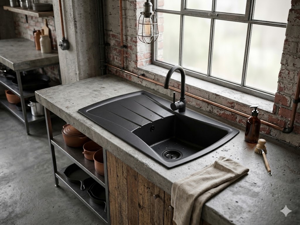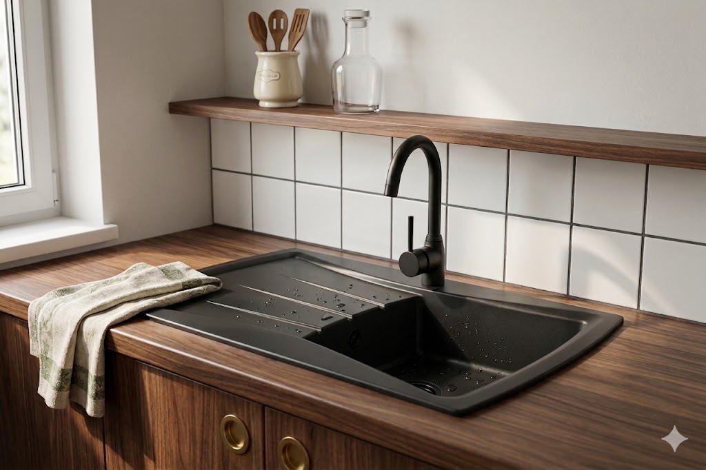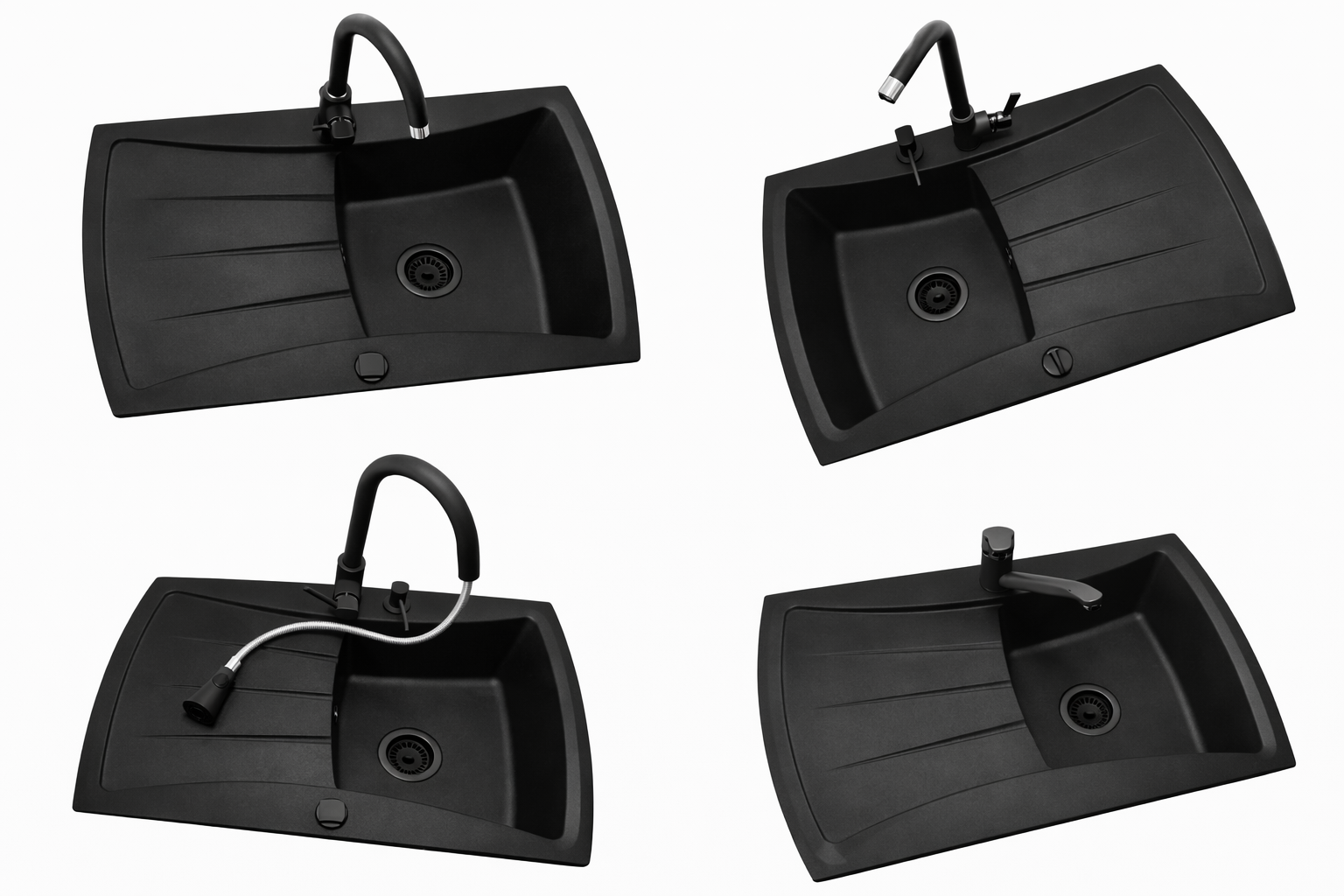 Model LINCO to granitowy zlewozmywak jednokomorowy w eleganckim czarnym kolorze, który łączy funkcjonalność, trwałość oraz nowoczesny design, dzięki czemu sprawdzi się zarówno w mniejszych, jak i większych przestrzeniach.