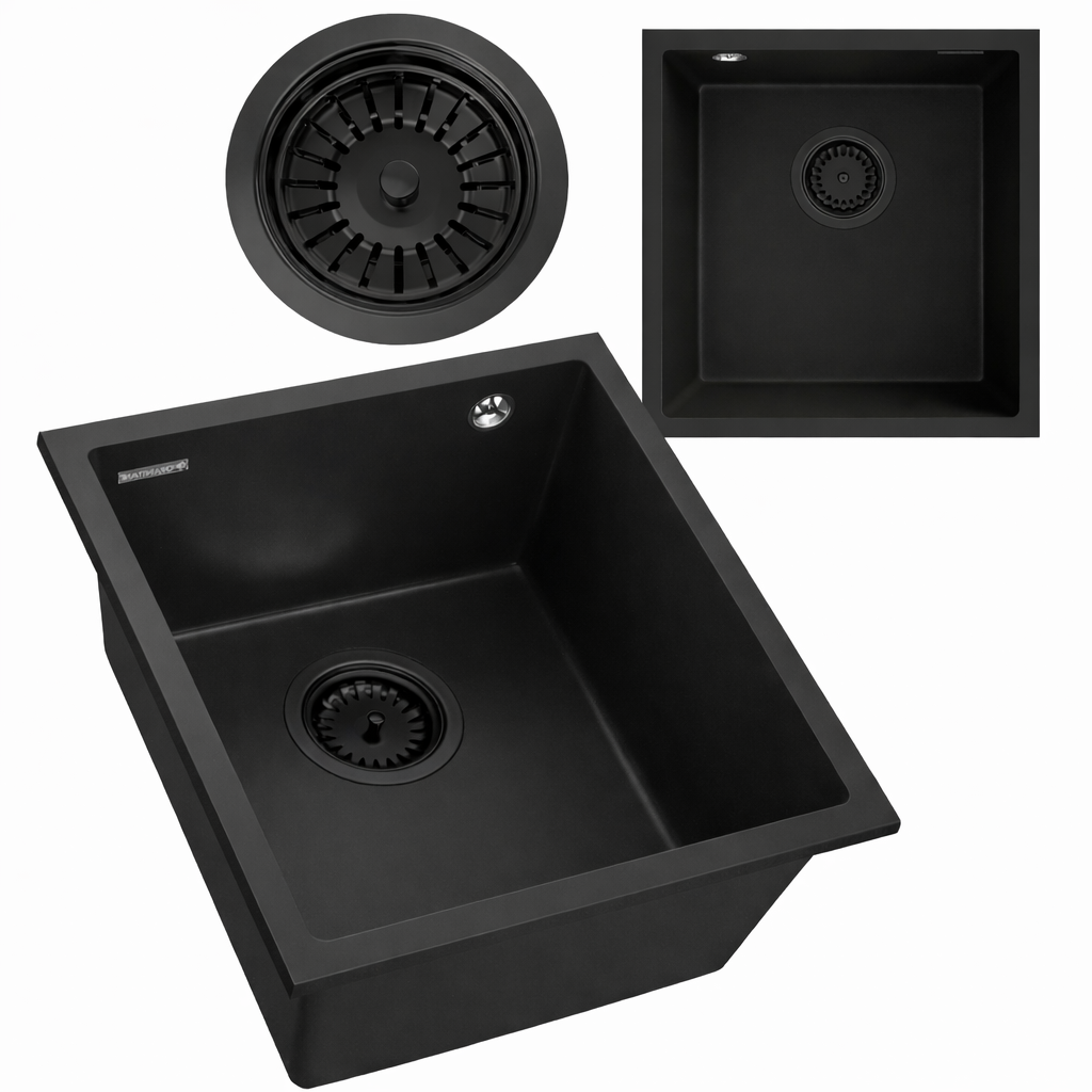 Zlewozmywak kuchenny zlew granitowy jednokomorowy czarny syfon czarny LUSO