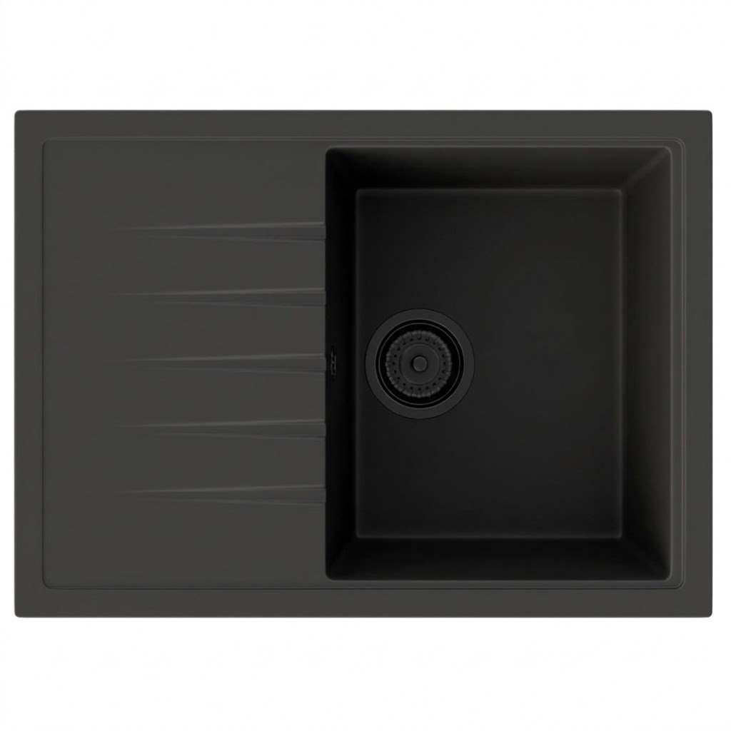 Zlewozmywak kuchenny zlew granitowy jednokomorowy czarny syfon czarny MESO