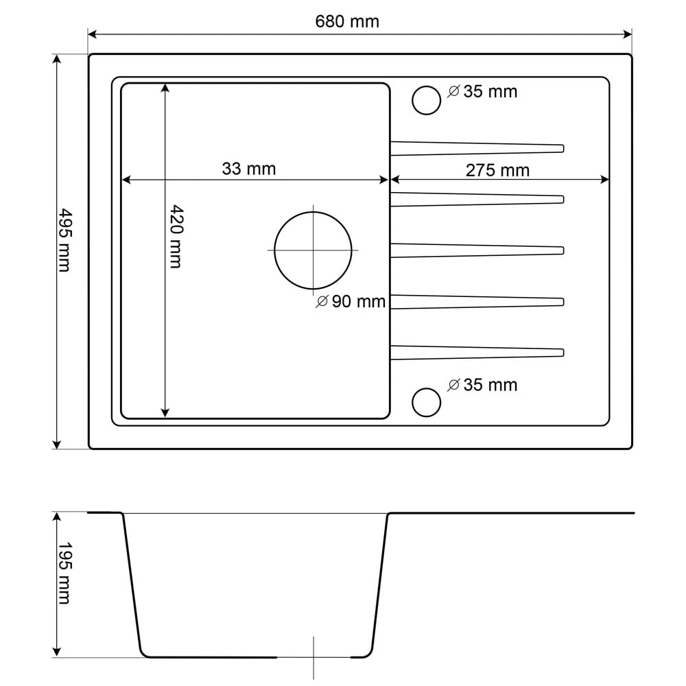 Model MESO to granitowy zlewozmywak jednokomorowy z ociekaczem w eleganckim czarnym kolorze, który łączy nowoczesny design, wysoką trwałość oraz wygodę użytkowania, dzięki czemu doskonale sprawdzi się zarówno w kuchniach klasycznych, jak i nowoczesnych. Wykonany z materiału (80% kruszywo + 20% żywica) zapewnia odporność na uszkodzenia i codzienne użytkowanie, a głęboka komora 190 mm umożliwia komfortowe mycie większych naczyń i garnków. Praktyczny ociekacz zwiększa powierzchnię roboczą i ułatwia organizację pracy w kuchni, co jest szczególnie istotne przy intensywnym użytkowaniu. Zlewozmywak przeznaczony jest do montażu nablatowego, co zapewnia szybką i wygodną instalację oraz łatwe dopasowanie do zabudowy. Dodatkowym atutem jest możliwość bezpłatnego nawiercania otworów (A, B, C), dzięki czemu możesz w pełni dopasować produkt do baterii kuchennej, dozownika płynu lub korka automatycznego, a także wybrać stronę komory (lewa lub prawa) zgodnie z układem kuchni, istnieje również opcja zamówienia zlewu bez nawierconych otworów. W zestawie znajduje się czarny syfon manualny przyścienny, który oszczędza miejsce w szafce, posiada nowoczesny wygląd dopasowany do zlewozmywaka oraz umożliwia podłączenie zmywarki lub pralki, zwiększając funkcjonalność całej instalacji.