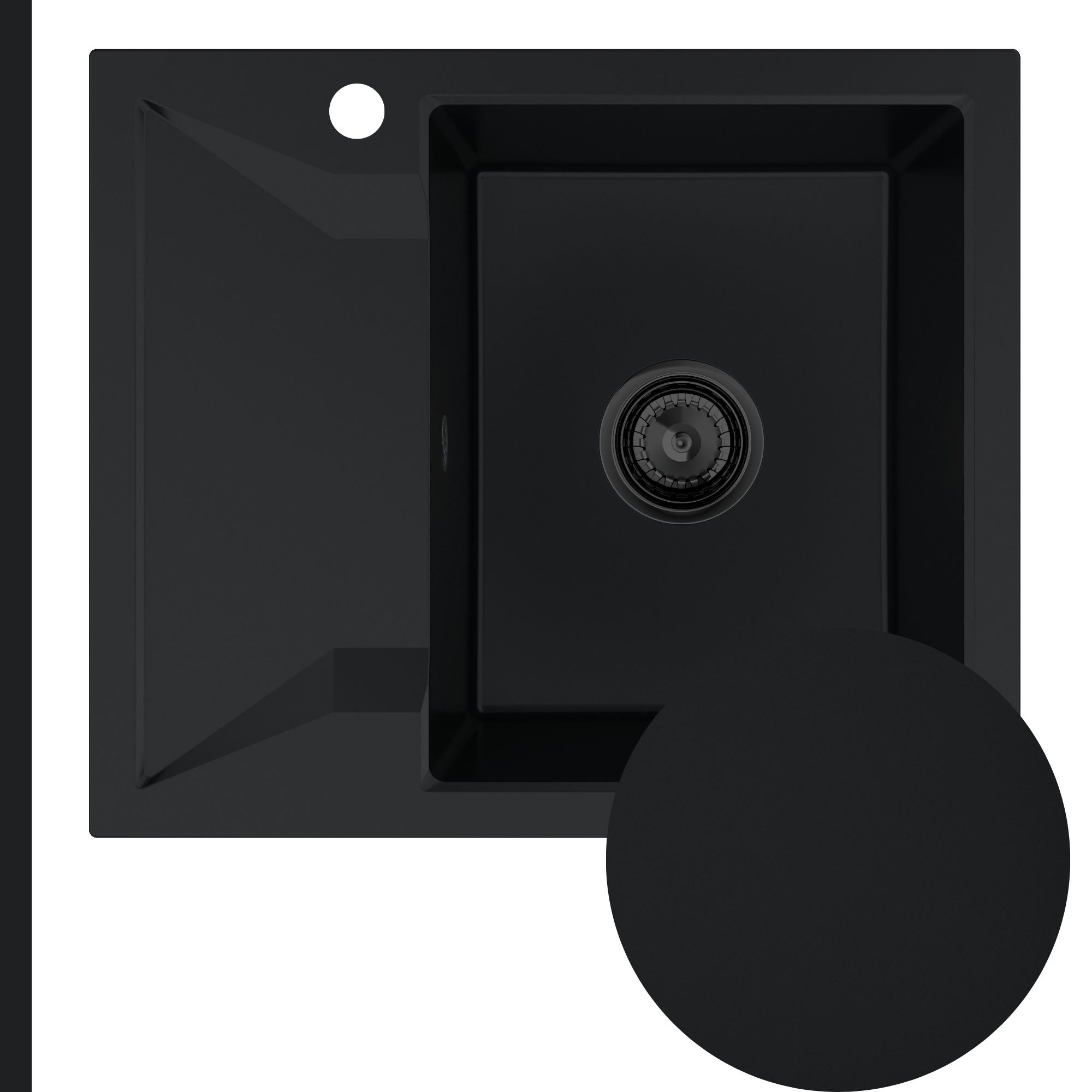 Zlewozmywak kuchenny zlew granitowy jednokomorowy czarny syfon czarny SADO