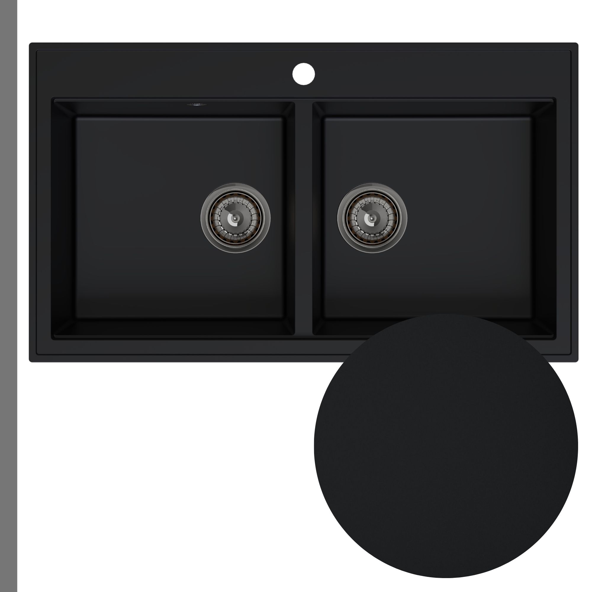 Zlewozmywak kuchenny zlew granitowy jednokomorowy czarny syfon czarny SILO