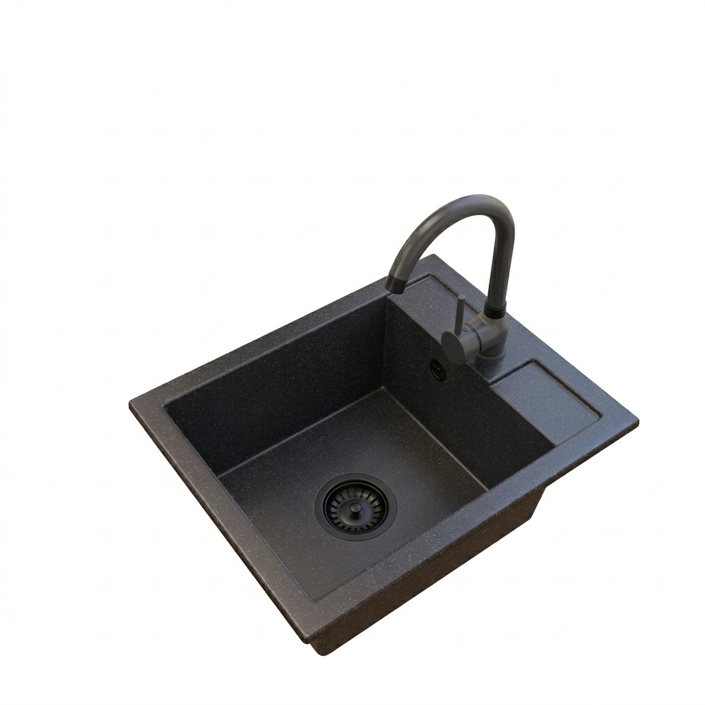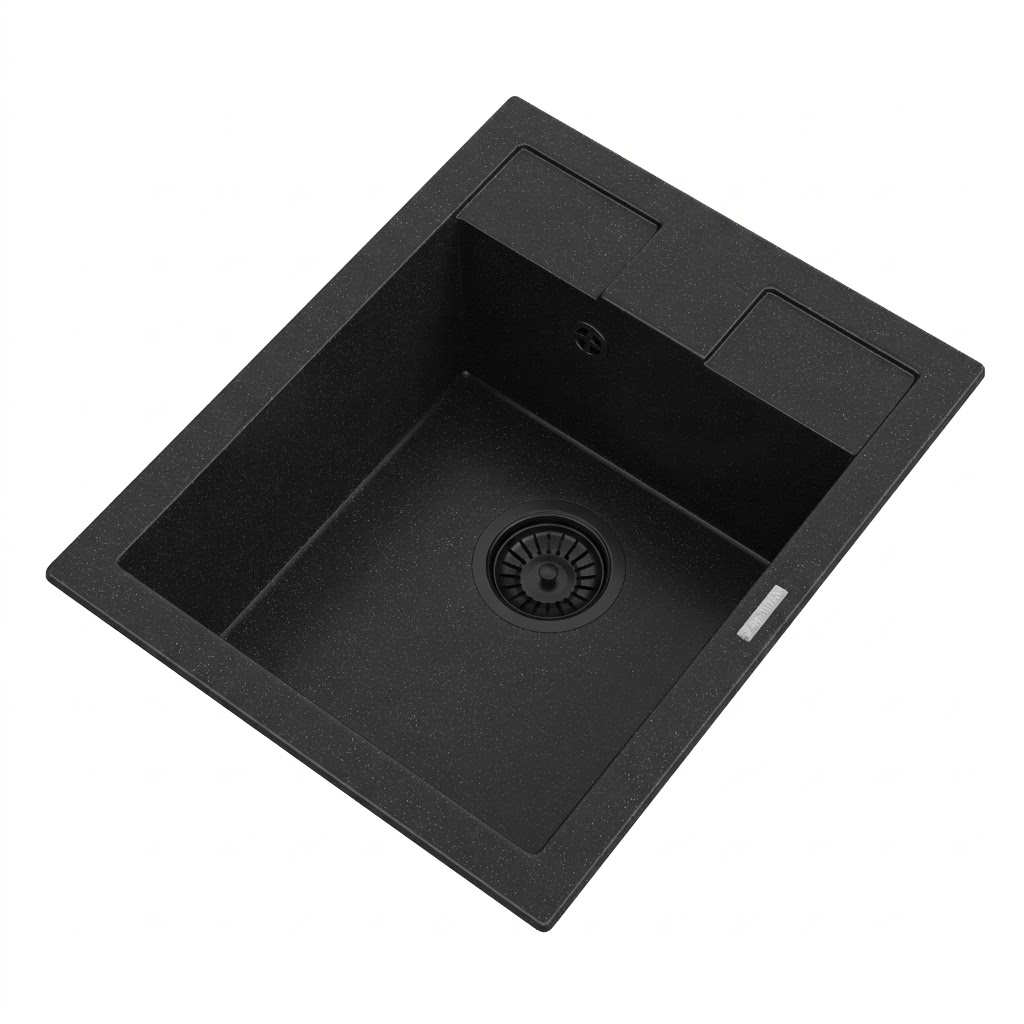 Zlewozmywak kuchenny zlew granitowy jednokomorowy czarny syfon czarny STAN