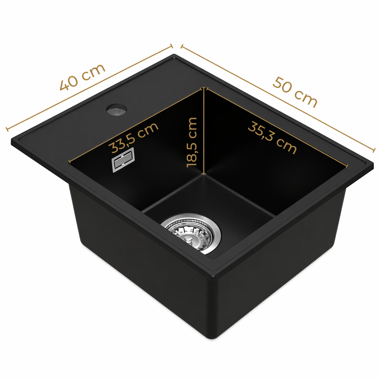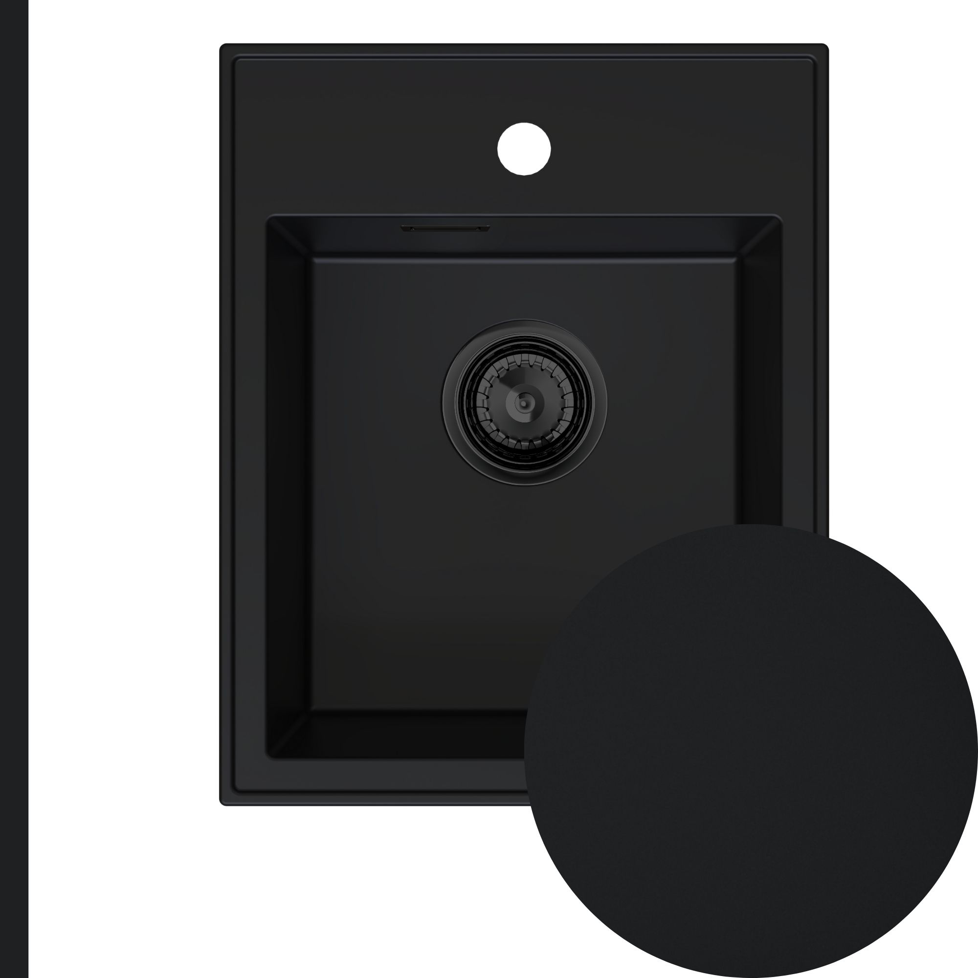Zlewozmywak kuchenny zlew granitowy jednokomorowy czarny syfon czarny VELA