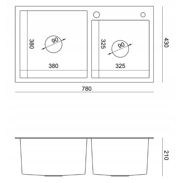 | Średnice odpływów | 90 mm |