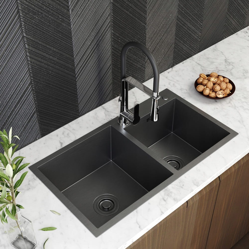 Zlewozmywak stalowy 2 komory czarny