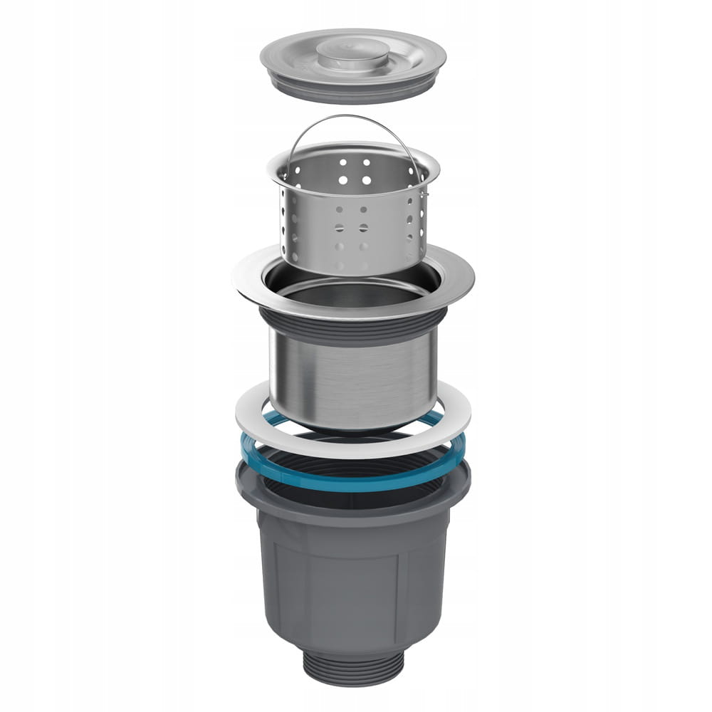 W skład zestawu wchodzą: zlewozmywak, przyścienny syfon manualny w kolorze CZARNYM, mata wygłuszająca zlewozmywak, dozownik do płynu.