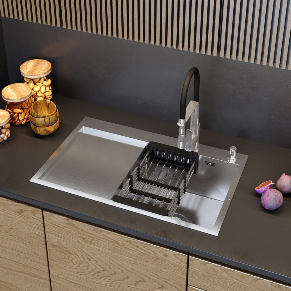 Model BARI wykonany jest z wysokiej jakości stali szlachetnej, która charakteryzuje się niezwykłą funkcjonalnością i trwałością. Produkt, dzięki prostym, geometrycznym kształtom, wyróżnia minimalizm i uniwersalna forma, dlatego świetnie koresponduje z wieloma stylami wnętrzarskimi. Możliwość montażu w szafce od 80 cm.