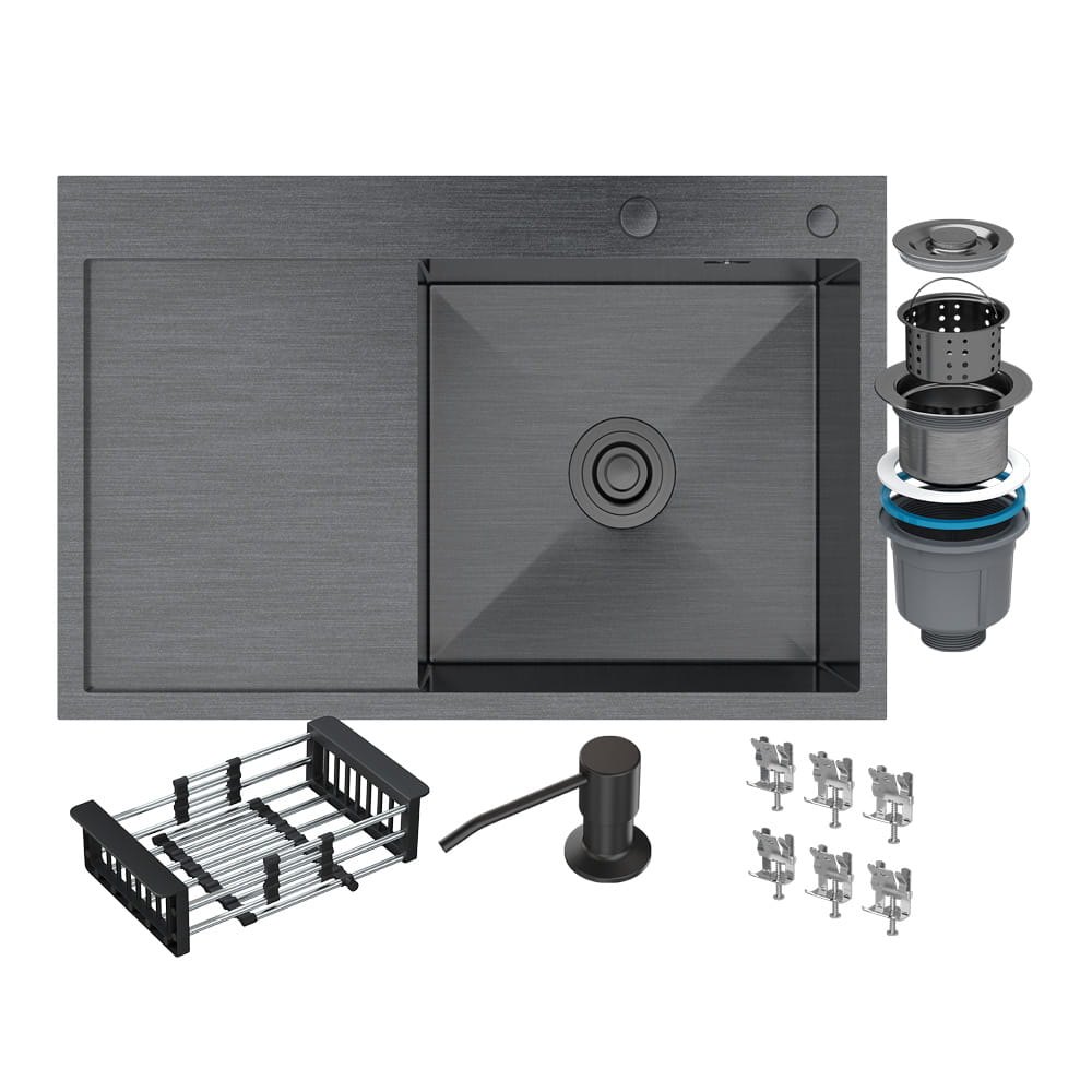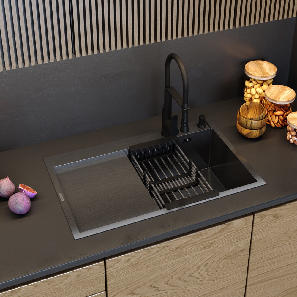 Zlewozmywak stalowy jednokomorowy z ociekaczem prawy - CZARNY lub CHROM